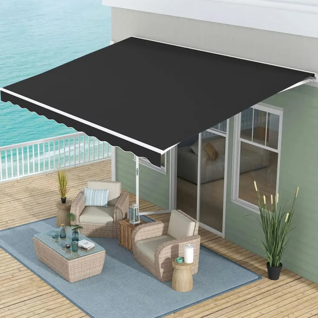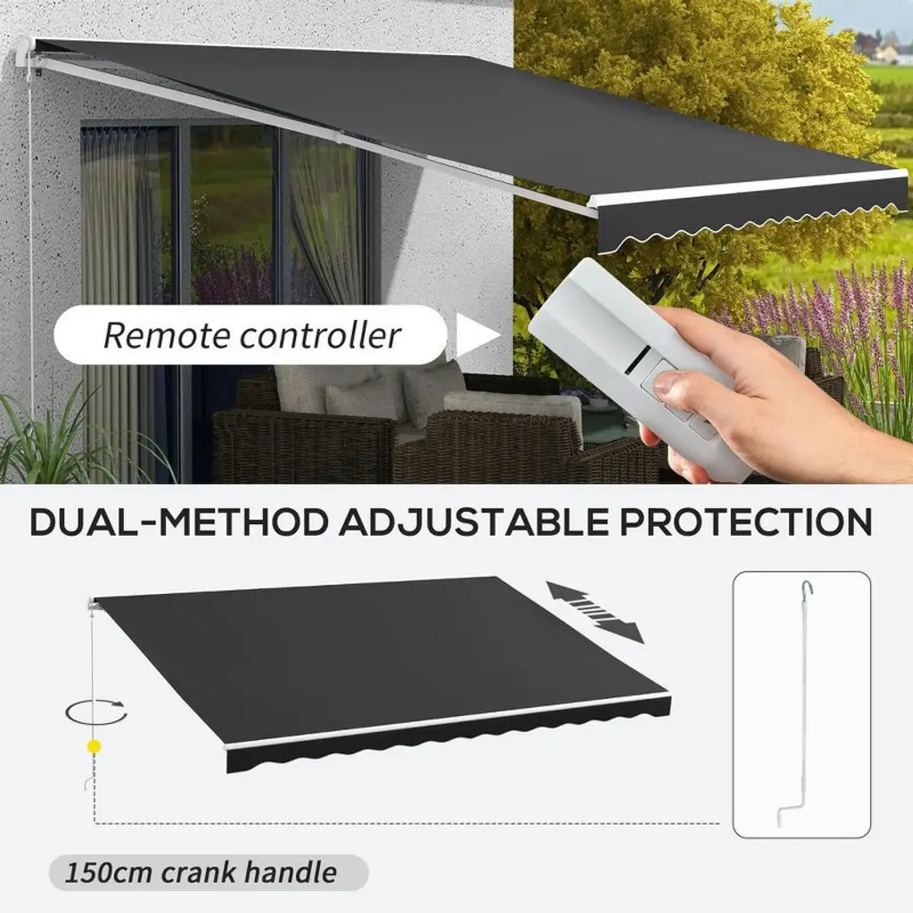 Resenkos Patio Awning, Outdoor Sun Shade Shelter Cover Awnings,16'x10' Electric Retractable Awning Sunshade Shelter With Remote Controller & Crank