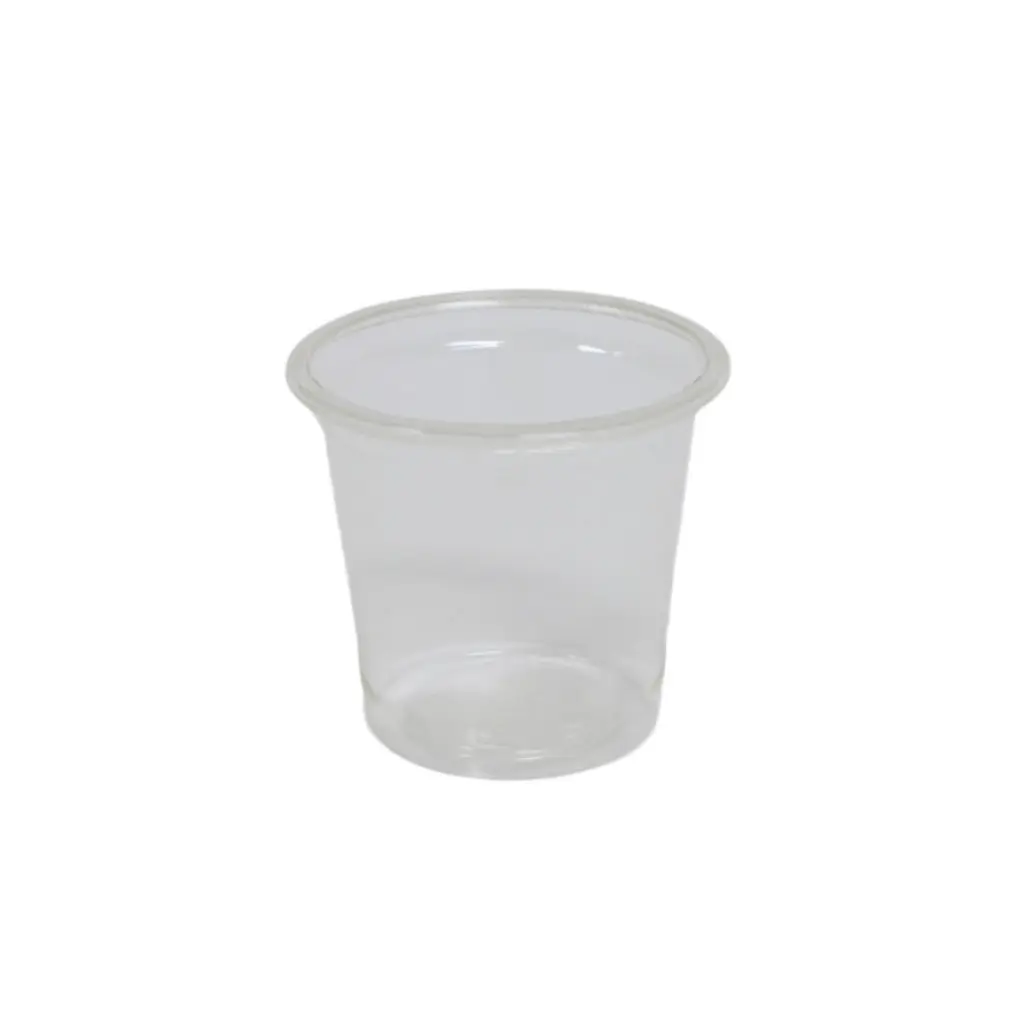 These 1 oz. clear portion cups are made from Polylactic Acid (PLA), a compostable resin derived from corn. Certified compostable by the Biodegradable Products Institute (BPI), these cups are designed to compost within 180 days in commercial composting facilities (availability may vary). Ideal for cold foods, sauces, seasonings, and samples, these cups are suitable for refrigeration, freezing, delivery, and takeout. Lids are sold separately. Store out of direct sunlight to prevent melting, as PLA begins to melt at 105°F.
