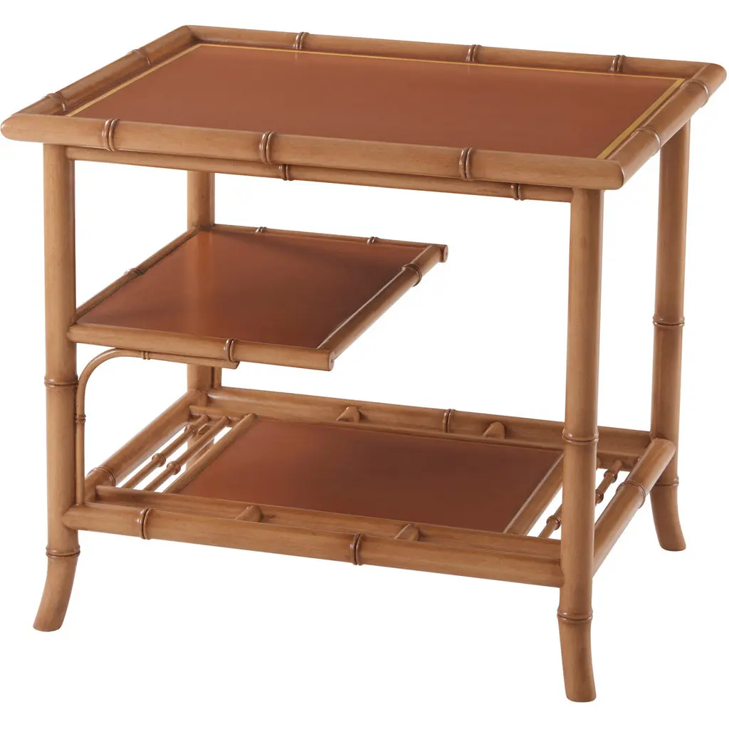 Restored Two-Tier Rattan Wedge Table W/ Mahogany Top