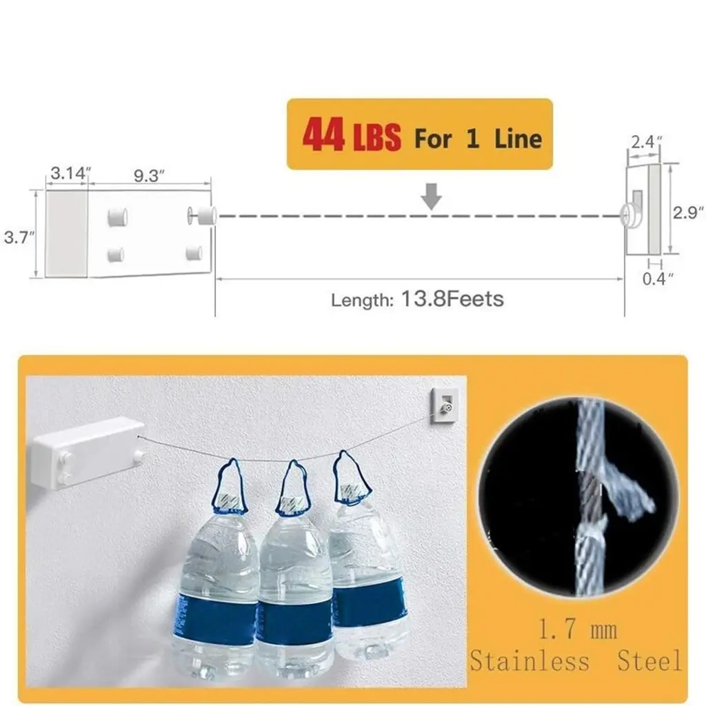 RETRACTABLE CLOTHING LINE - With retractable design, it can meet a variety of hanging needs, suitable for hanging different types of clothes: bathing suits, towels, shirts, quilts, socks and so on. HEAVY DUTY - This clothesline is made of high quality ABS material and aluminum bracket, high temperature resistant, which ensures high quality and long service life CAPACITY - This adjustable clothesline extends up to 4.2 meters (13.8 feet) with a double rope design and can hold up to 20 kg (44 lbs) per line. SPACE - CONVENIENT FOR YOUR LIFE: The Laundry Clothesline extends and retracts freely so you can use it when drying and neatly tuck it away when you don't need it. Totally save space in your home! The clothesline will retract as slowly as walking to ensure the safety of those using it. DURABLE - Locking to prevent sagging. This shower clothesline is fully retractable and comes with a protective ABS housing!