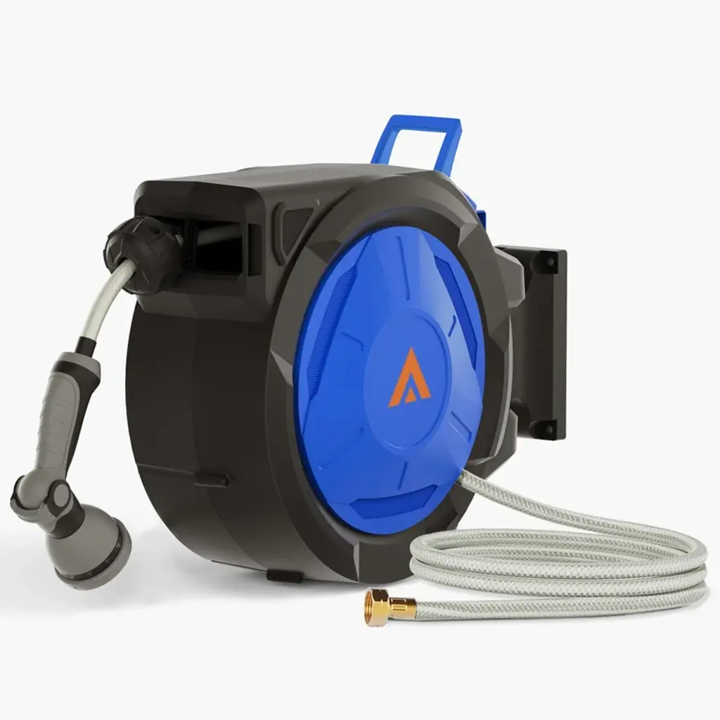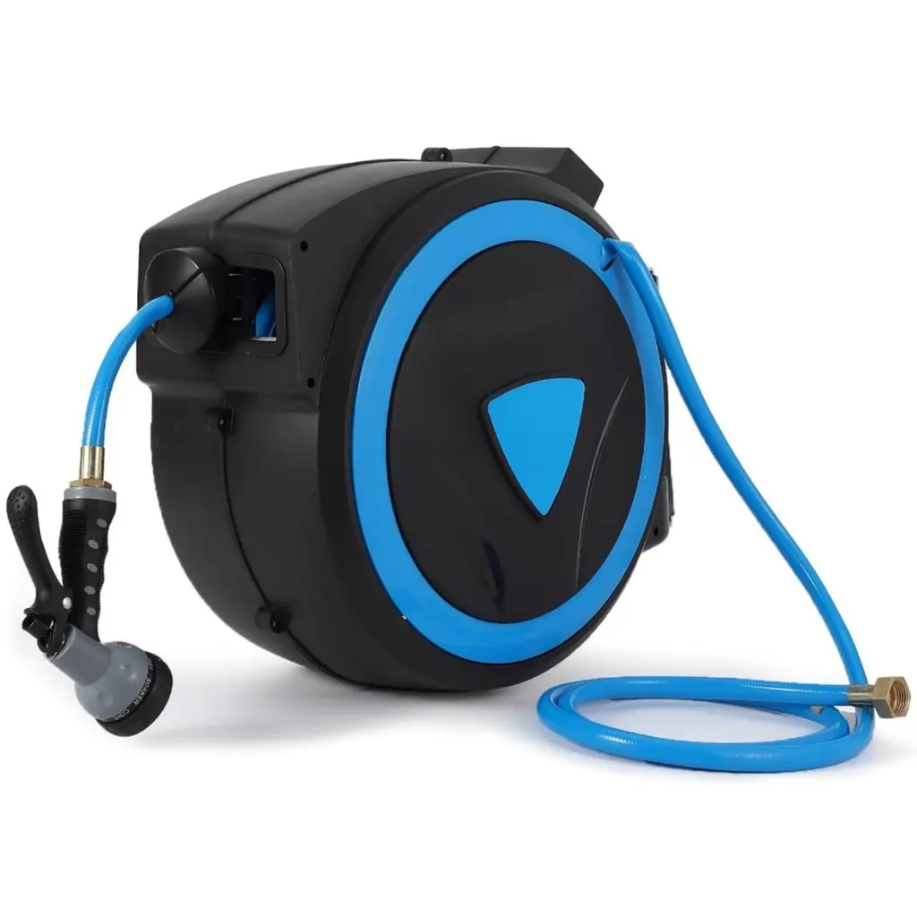 Retractable Garden Hose Reel - 5/8 In x 90/82/65 Ft, Free Lock, Auto Rewind, Swivel Bracket Any Length Lock/Slow Return System/Wall Mounted