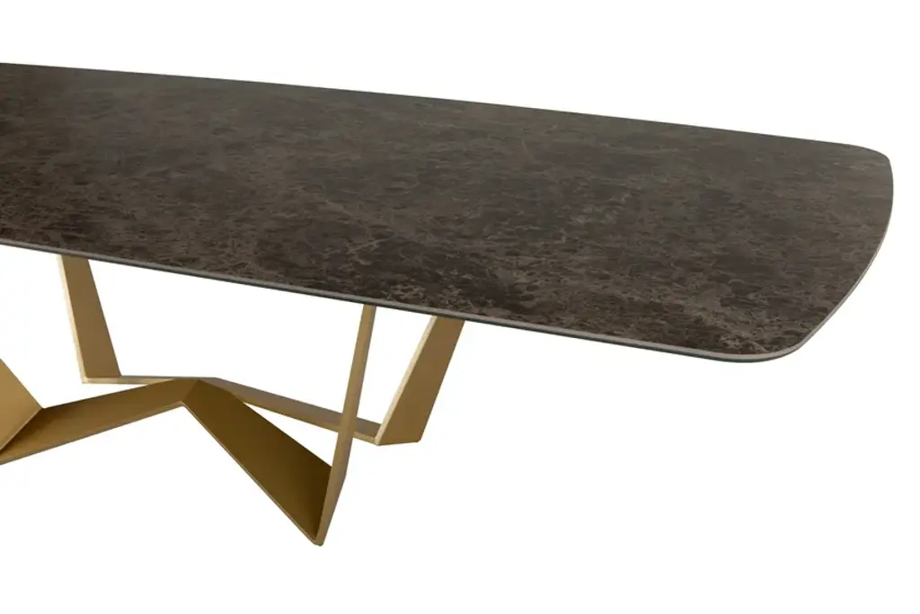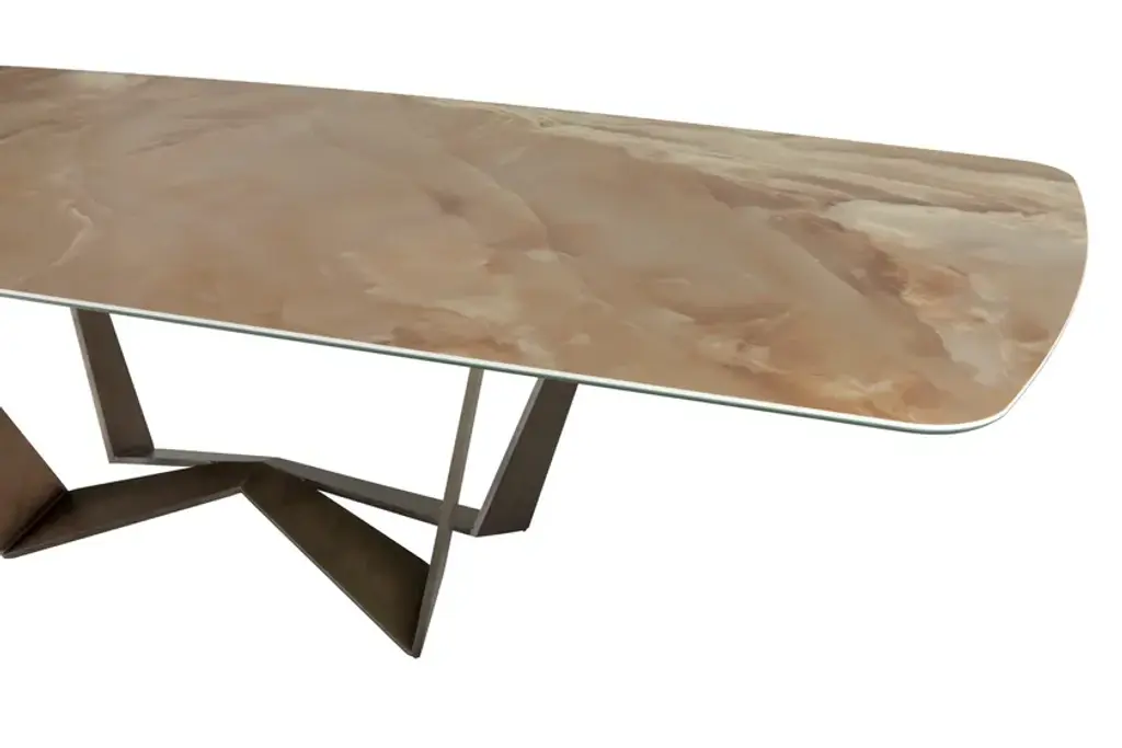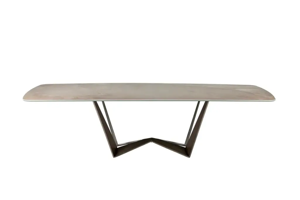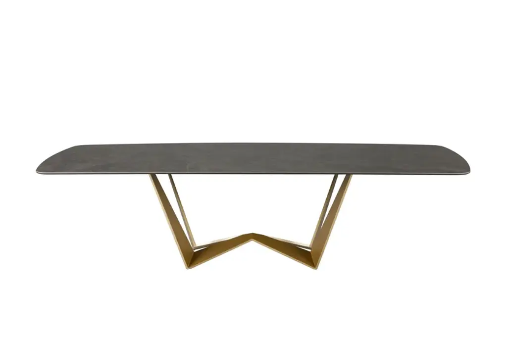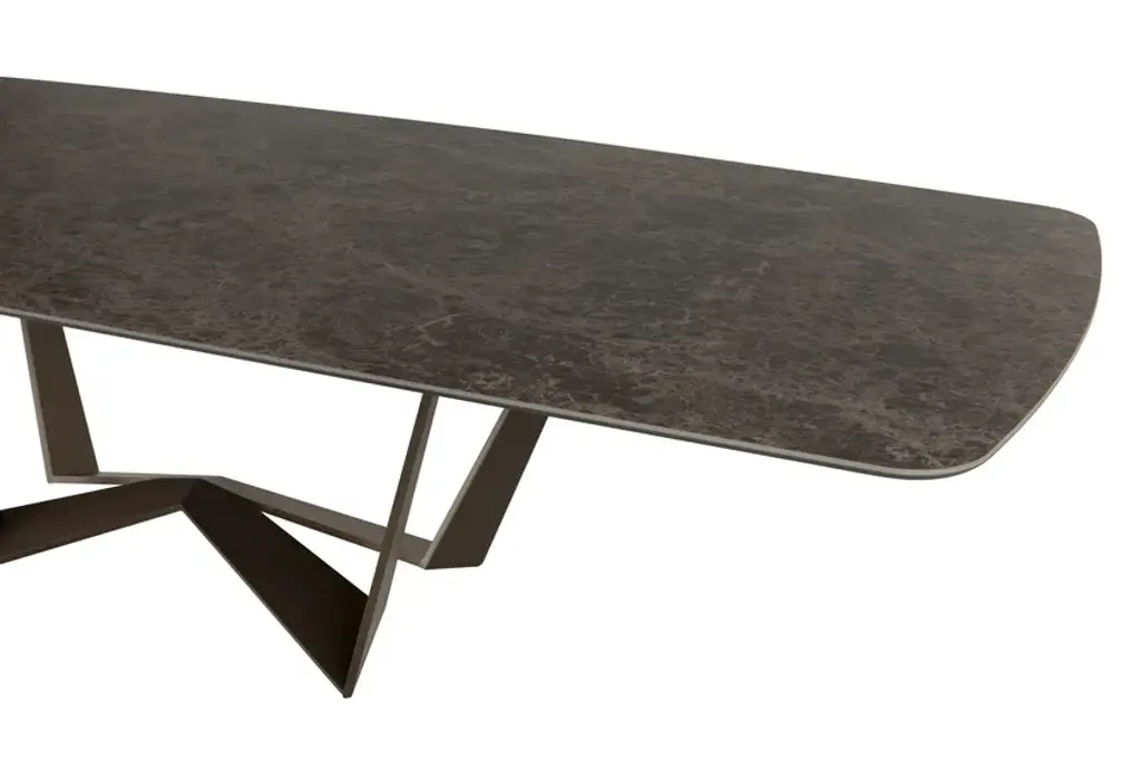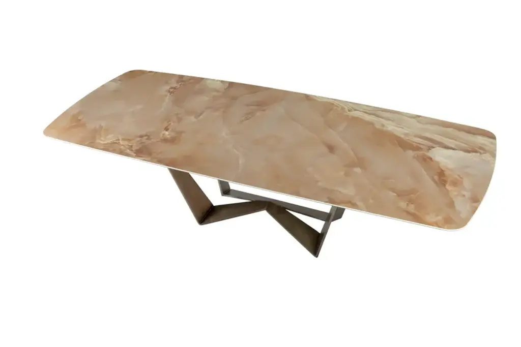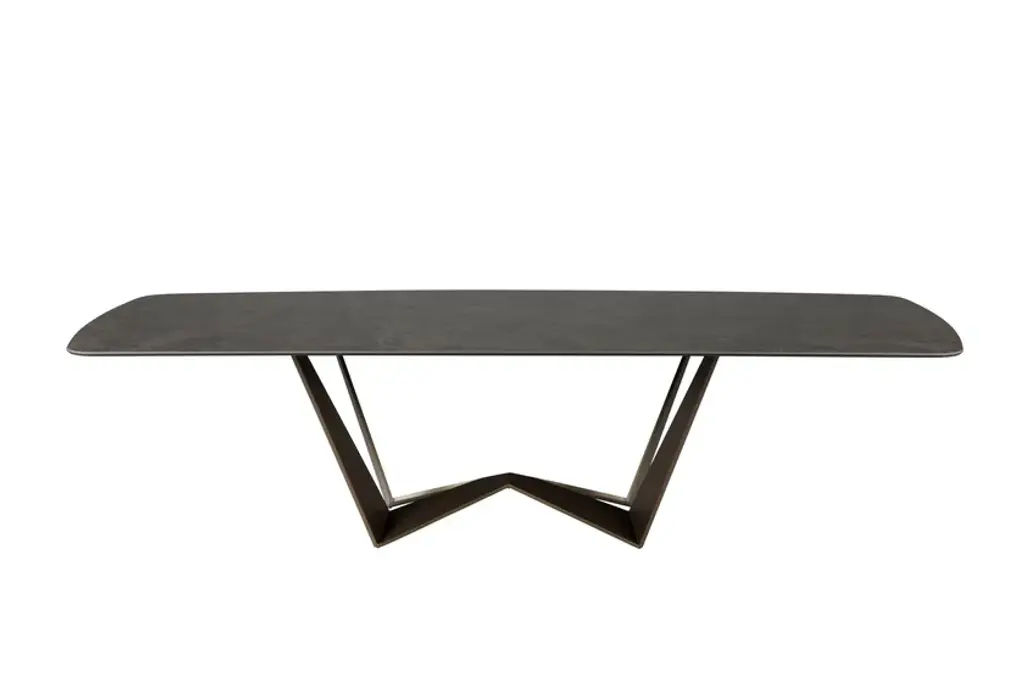 Reverse table is a perfect reversible table for any occasion. A base in painted steel with glass or porcelain stoneware tops available in different finishes. Choose the one that suits you best and create your own living room. This symbiosis creates a captivating given by the game of contrast between the geometric shape of the base and elegant softness of the new tops.Fixed table with painted steel structure and shaped tops in porcelain stoneware.Metal base: Gold, Copper, Brushed Copper, Bronze, TitaniumTop in porcelain stoneware: Emperador, Symphonie, Onice Ambra, Macchiavecchia glossy, Macchiavecchia matt.