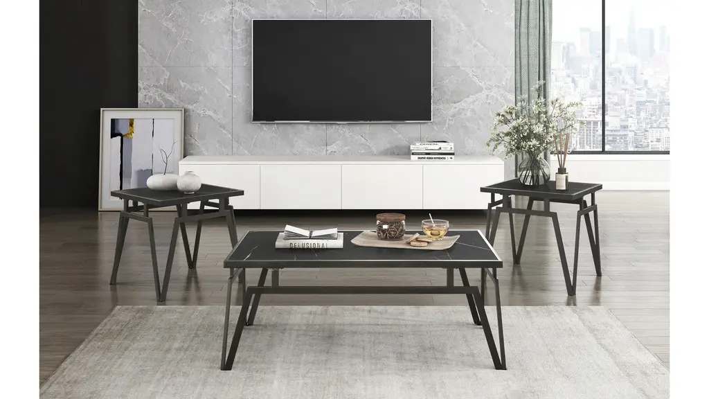 Rex 3-piece occasional table set, designed with a striking modern silhouette that brings elegance and bold style to any room. Featuring durable black sintered stone tabletops, these tables offer both sophistication and practicality. The sleek bronze metal base adds a contemporary touch, while the minimalist lines create a stunning focal point. Perfect for modern homes, this set is ideal for showcasing d_cor or adding functional surface space with a touch of luxury.