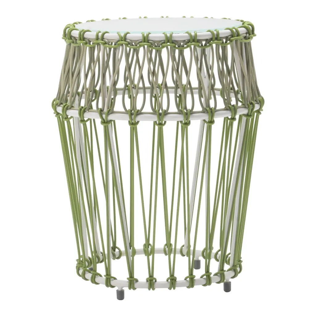 Ringo coffee table by Kenneth Cobonpue.Materials: polyethyelene, aluminum. glass. Also available in other colors.Dimensions: glass diameter 73 cm x height 10 mm.table diameter 90 cm x height 40 cm.March to the beat of your own drum with Ringo. The lightness of the intricately stringed open weave adds a subtle groove to any space.Designer's BiographyKenneth Cobonpue is a multi-awarded furniture designer and manufacturer from Cebu, Philippines. His passage to design began in 1987, studying Industrial Design at the Pratt Institute in New York. While completing his studies, he apprenticed for a leather and wood workshop near Florence, Italy. He went on to study Furniture Marketing and Production at the Export-Akademie Baden-Württemberg in Reutlingen, Germany, under a private and state scholarship program, and subsequently worked in Bielefeld and Munich.Kenneth returned home to Cebu in 1996 to manage Interior Crafts of the Islands, Inc., a furniture design and manufacturing company founded by his mother Betty Cobonpue in 1972. Discovering that modern design could have a new face using natural fibers and materials, Kenneth created pieces of functional art, offering an alternative to the Western definition of modern design. Today, the Kennethcobonpue brand has become known globally for its unique designs and extensive roster of clientele, including Hollywood celebrities and members of royalty.With his masterful way of integrating nature, traditional craft and innovative technologies, designer and creative director Kenneth Cobonpue has earned international awards and recognition for his creative, organic, and expressive pieces. Working closely with some of the world’s leading designers, from household names to emerging talents, Kenneth has been pushing the envelope for design in the Philippines and sharing his vision to a global audience. Awards to his credit include five Japan Good Design Awards, the grand prize at Singapore International Design Competition, the Design for Asia Award of Hong Kong, the American Society of Interior Design Top Pick selection and the French Coup de Coeur award. Several of his designs were selected for several editions of the International Design Yearbook published in London and New York. Phaidon’s book entitled “& FORK” underscores Kenneth’s position as a leader of a new movement incorporating new technologies with crafts. In 2007, TIME magazine called him “rattan’s first virtuoso”. Kenneth was named the Designer of the Year in the first edition of Maison et Objet Asia held in March 2014 in Singapore.Kenneth reveals new work each year in the design shows from Milan to New York, and he speaks regularly about Southeast Asian design all over the world. He has also appeared in European television and in countless international magazines and newspapers around the world. Various Cobonpue designs have also appeared in full-length feature films and television, such as Oceans 13 and CSI.