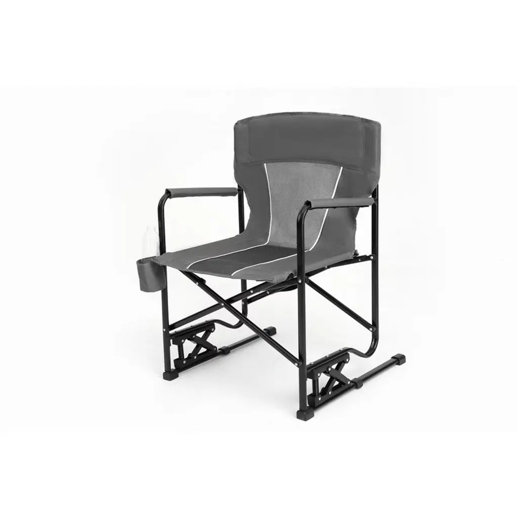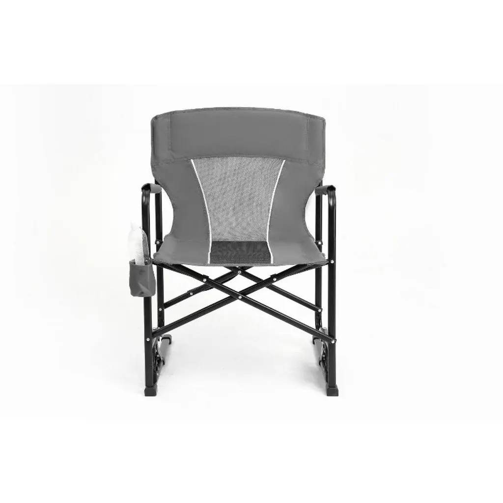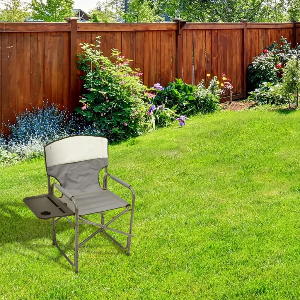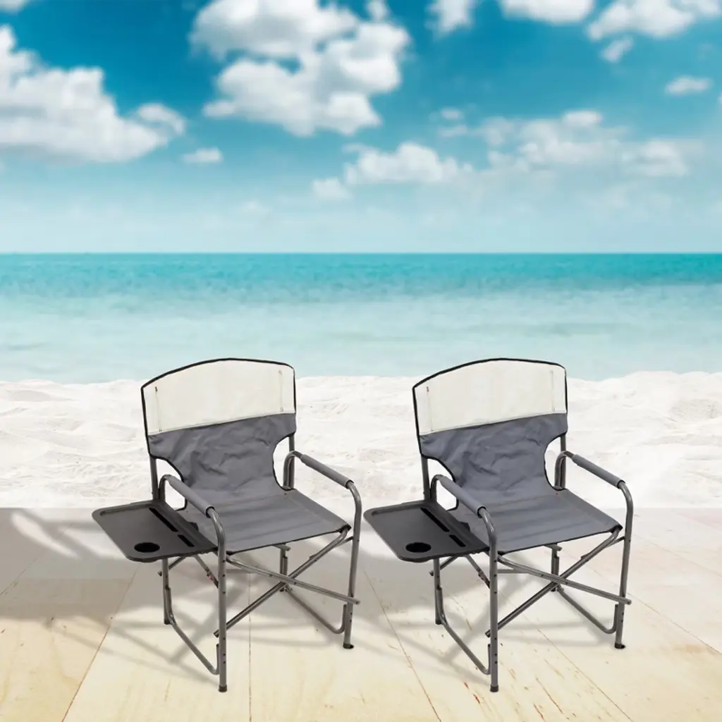 Rio Brands Xxl Oversized Powder Coated Steel Frame Foldable Director’s Chair With Fold Out Side Table, Media And Drink Slots, And Carry Straps, Gray