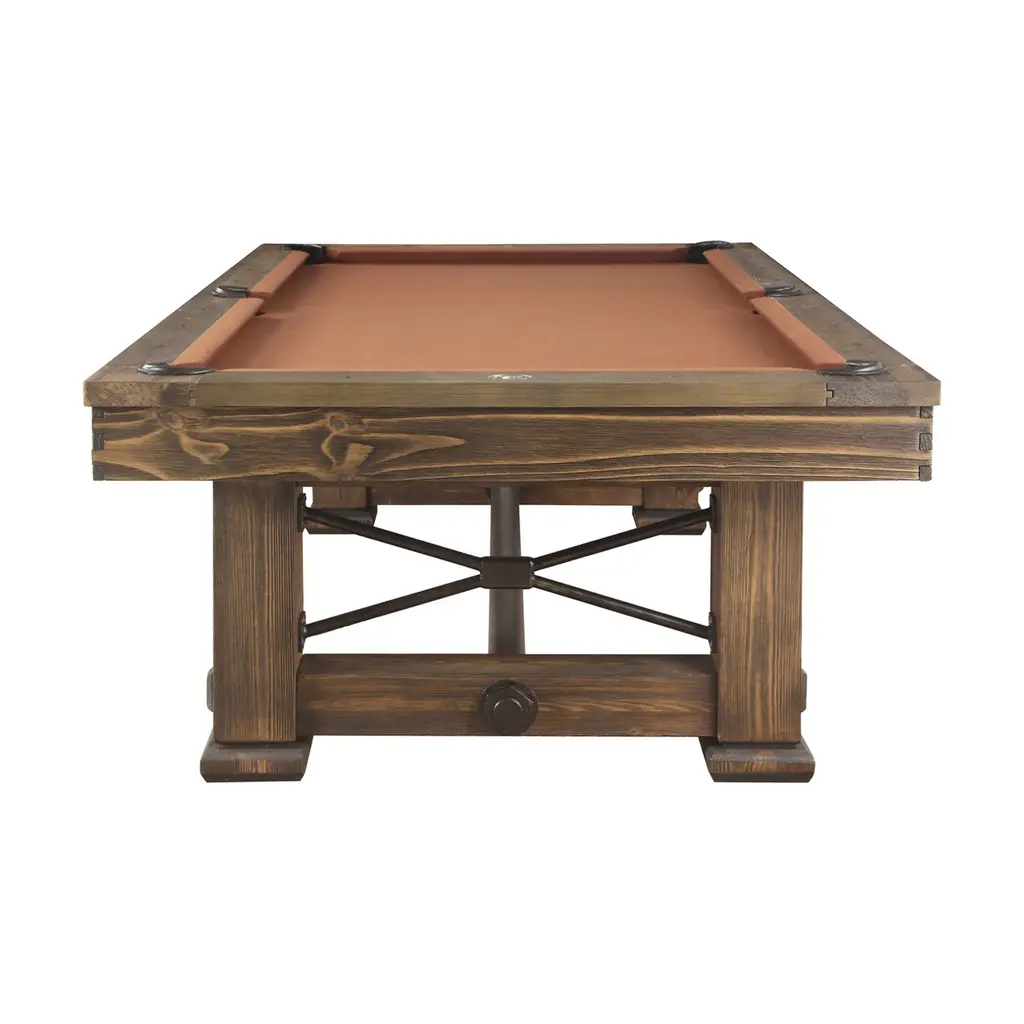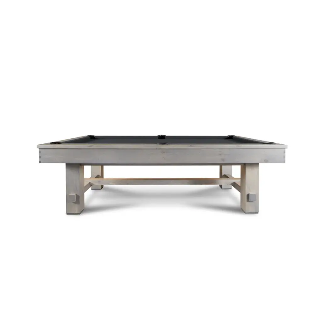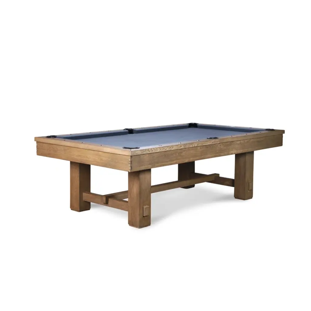 The Rio Grande Slate Pool Table from Playcraft combines timeless craftsmanship with durable performance. Featuring a post and beam leg design with artisan joinery and hand finishing, its Weathered Bark or Weathered Raven finish evokes the charm of reclaimed barn wood. Built to BCA standards, it includes premium K66 gum rubber cushions and inlaid sights on the rails for precise play. This elegant table promises lasting quality and refined style, perfect for memorable billiards gatherings with family and friends. Highlights