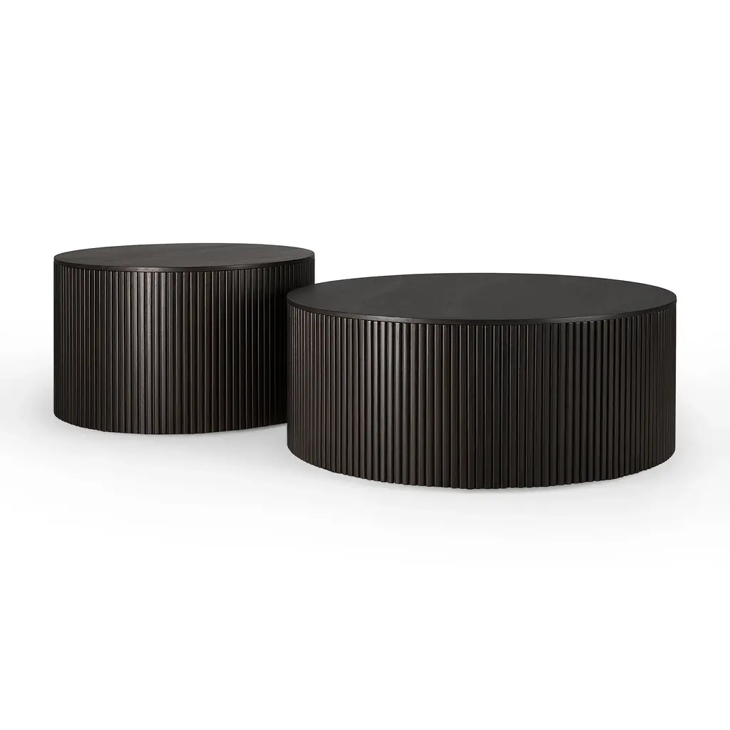 Multifunctional designs are always in style. Cleverly designed by Jacques Deneef, the Roller Max Round Coffee Table from Ethnicraft offers striking Scandinavian style that doubles as both functional furniture and convenient storage. Masterfully crafted and hand-carved from dark brown-tinted solid mahogany wood, the lid of this coffee table lifts to reveal space to hide pillows, magazines, throws, and more, ensuring your space is always clean and clutter-free. Highlights