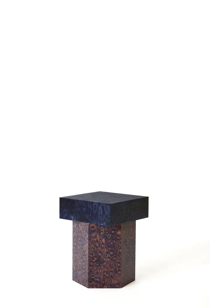 Round Bold Osis hexagon base side table by Llot LlovDimensions: Ø 40 x H: 34Materials: core board birchAlso available in round slim, rectangle slim, rectangle bold.With OSIS Edition 5 LLOT LLOV is deepening the understanding of the impact of salt and pigment. Colour and surface patterns enter into a kind of dialogue with the shape of the modules. The tabletops can be exchanged with a hexagonal pin, allowing for variations of the harmonious colour spectrum.The surface finish OSIS is an innovation developed by llot llov and is 100% handmade in Berlin.Behind the LLOT LLOV brand is the studio for product and interior design as well as the producer of furniture, objects, lighting and surfaces. Since their foundation in 2006 by Ania Bauer and Jacob Brinck, the two Berlin based author designers have established themselves internationally. One of their recognizable features is the reinterpretation of traditional arts and crafts brought into a contemporary design context.An example of this is OSIS, an innovative surface finish using salt crystals and colour pigments on wood, with which they won the German Materials Prize, among other awards. They use OSIS as well as the terrazzo GLACIER, which was introduced in 2018 and is made of nail polish bottles, for their own designs, but they also supply interior designers worldwide. For GLACIER, as for other designs, they upcycle high-quality materials, for example from the cosmetics industry. Their objects are manufactured in Europe, often in social workshops, and distributed directly by LLOT LLOV.LLOT LLOV produce exclusive furniture and objects for private or corporate clients and also manage interior design projects such as hotels or offices. In addition, the duo has been running a shop for fashion and accessories in Berlin-Mitte with BAERCK since 2007.