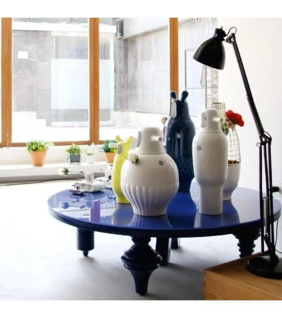 Round gloss multileg low table by Jaime HayonDimensions: Diameter 120 x height 35 cm Materials: MDF tabletop matt or gloss lacquered. Glass top of 8 mm lacquered on the bottom. Legs in solid alder wood are lacquered or stained to match with the table top. Available lacquered high gloss in white, red, blue, and black or lacquered matt in white, red, blue, and black.Available in rectangular shape and in finishes: Marble, matte, or walnut.The Multileg table came about in an obvious way, springing from the Multileg Cabinet. Using the same legs, Jaime designed three tabletops, converting them into functional sculptural centerpieces.In 1972, a group of young architects and designers from Barcelona created BD with the aim of producing and marketing furniture and other objects for our projects, with complete creative freedom and with a criterion that has turned out to be quite different from the norm at companies in the sector, regarding both the shape and function.