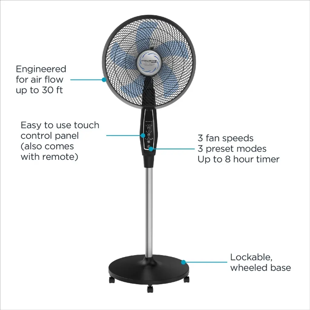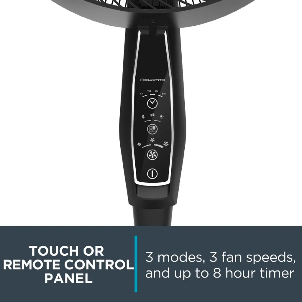 The new Rowenta Outdoor Extreme Fan's head is designed like a wind turbine to deliver 100% of the powerful airflow effect outside, while being silent enough to use indoors when sleeping (with a long range remote control). A powerful pedestal fan with long distance airflow (up to 30 ft.) Perfect fan for bedroom or any indoor and outdoor space.