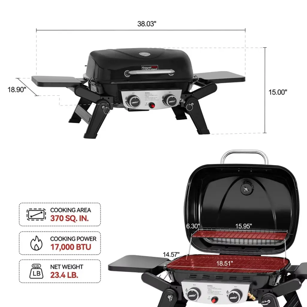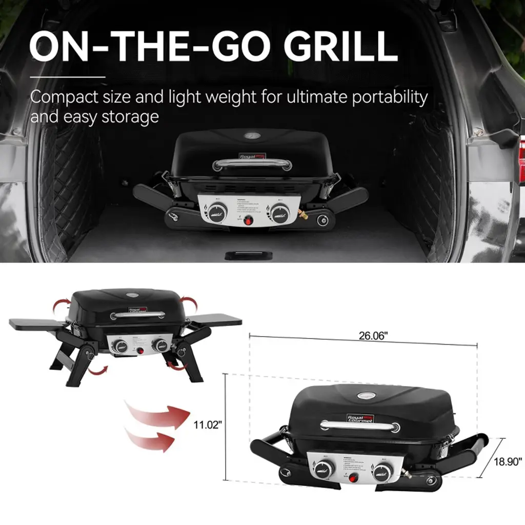 Royalgourmet 2-burner Portable Propane Gas Grill Tabletop Gas Grill Gt2005tg Black