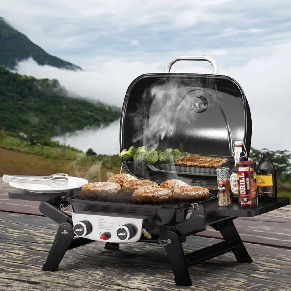 Embrace the freedom of outdoor cooking with the Royal Gourmet GT2005TG 2-Burner Portable Propane Gas Grill, designed for those who relish the convenience of grilling on the move. This compact grill is packed with features crafted for portability while maintaining top-notch performance. Ideal for grilling 2-4 servings at a time, it's perfect for whipping up anything from hot dogs and hamburgers for the family to steak and veggies for a cozy picnic dinner. Don't forget to pack this reliable grill for your next outdoor escapade!