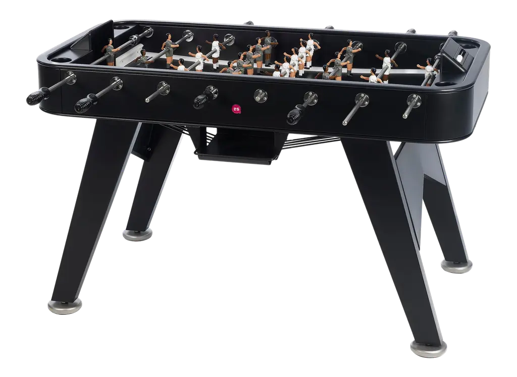 The RS2 football table is our original model, aking the football table out of the garage and moving it into the spaces where we do our living. We aimed for it to speak the language of design with the other furniture in the room. This football table stands out from the crowd thanks to its industrial design, sleek lines and elegant colours, not to mention its details, such as its cup-holders for all four players and its rubber-base levellers. It’s manufactured in steel with a polyester paint finish for indoor models, or in stainless steel in the case of the outdoor models. Thanks to its high-quality, hardwearing materials, this table is ready for intense use and a long life at your side. For indoor use only.