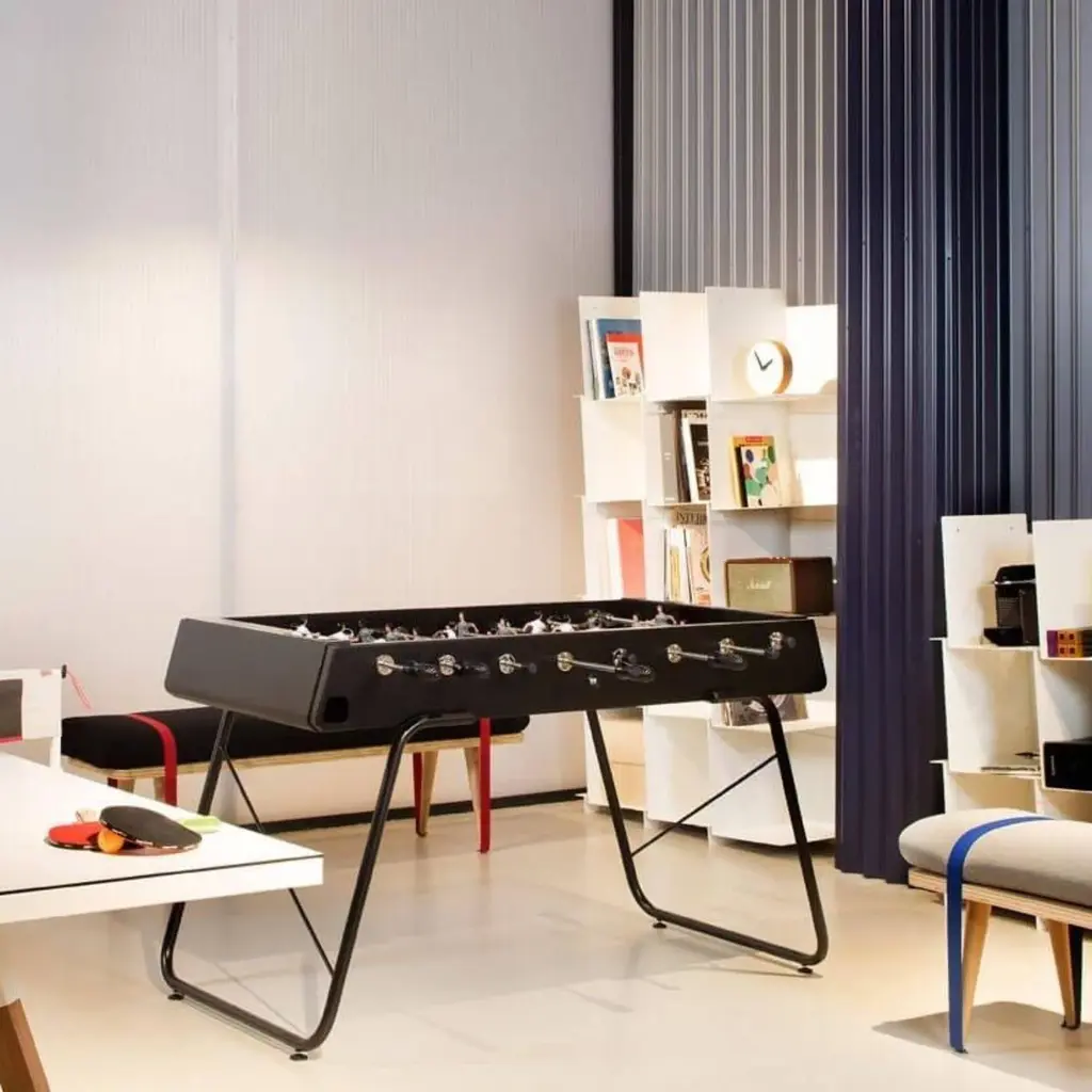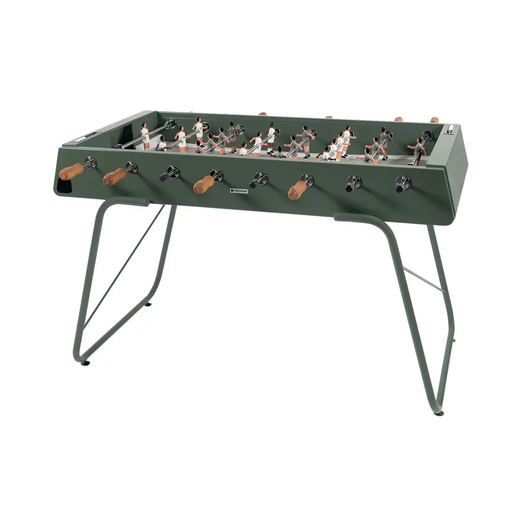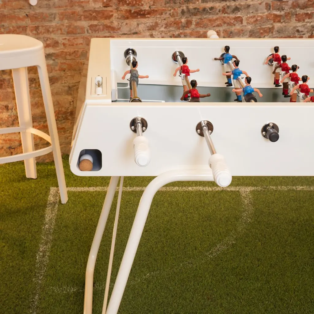 An all-terrain foosball table for the all too-dedicated foosball competitor. It goes both ways, too: play it indoors or outdoors. The folks at Barcelona-based RS Barcelona created a foosball gaming table with no plastic parts and entirely made of weather-resistant steel. The steel is coated in an electrophoresis process to keep shiny and new for endless games. This is the new RS#3 model, lighter than its predecessor by 20 kilos so it can be easily relocated from room to room, poolside to terrace. At the current 69 kilos (that's 152 pounds for you not on the metric system) this lightweight champ still withstands rigorous play as we learned first-hand at a fundraiser for breast cancer research held at one of our favorite design hubs here in downtown L.A. We loved it so much we brought a red table to our La Brea store. One-year manufacturer's warranty for defects. The table is stateside and ready to ship.