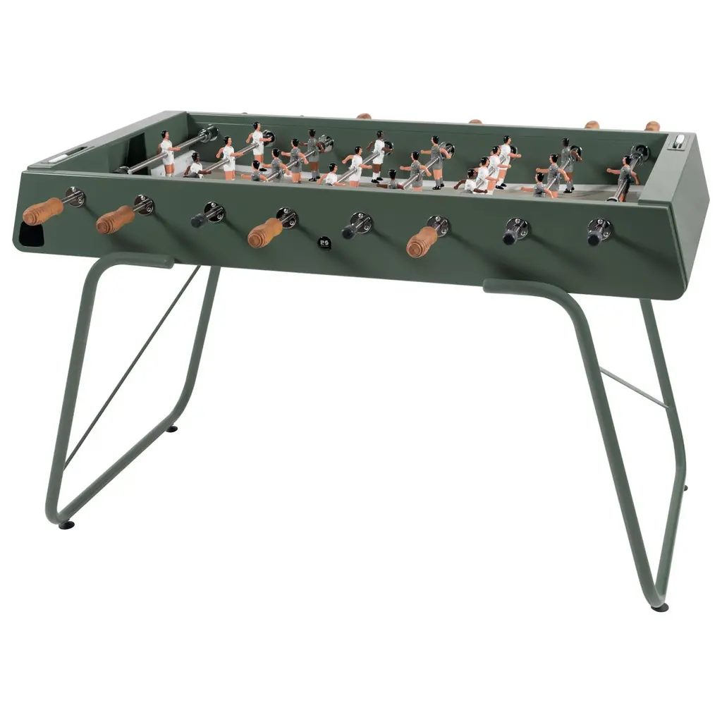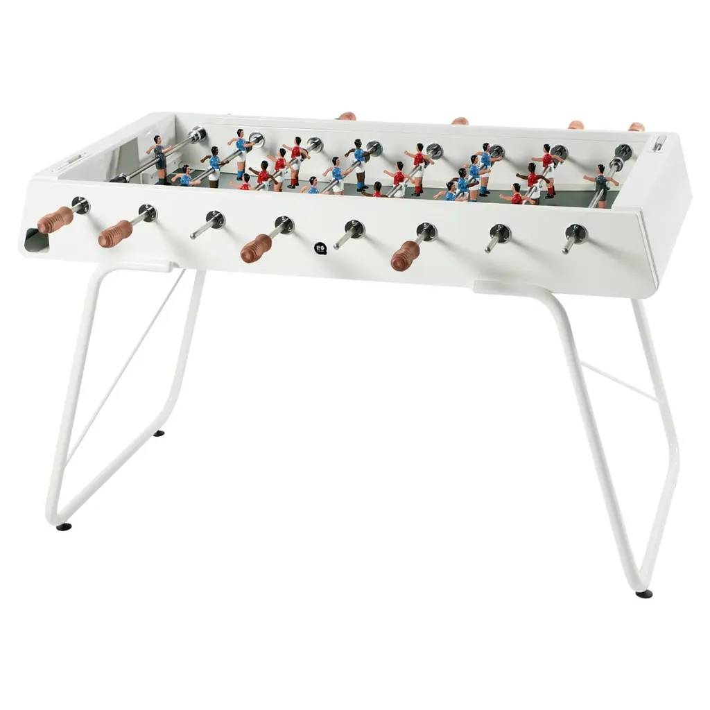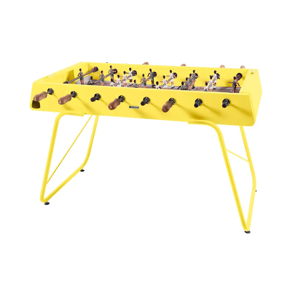 An all-terrain foosball table for the all too-dedicated foosball competitor. It goes both ways, too: play it indoors or outdoors. The folks at Barcelona-based RS Barcelona created a foosball gaming table with no plastic parts and entirely made of weather-resistant steel. The steel is coated in an electrophoresis process to keep shiny and new for endless games. This is the new RS#3 model, lighter than its predecessor by 20 kilos so it can be easily relocated from room to room, poolside to terrace. At the current 69 kilos (that's 152 pounds for you not on the metric system) this lightweight champ still withstands rigorous play as we learned first-hand at a fundraiser for breast cancer research held at one of our favorite design hubs here in downtown L.A. We loved it so much we brought a red table to our La Brea store. One-year manufacturer's warranty for defects. The table is stateside and ready to ship.