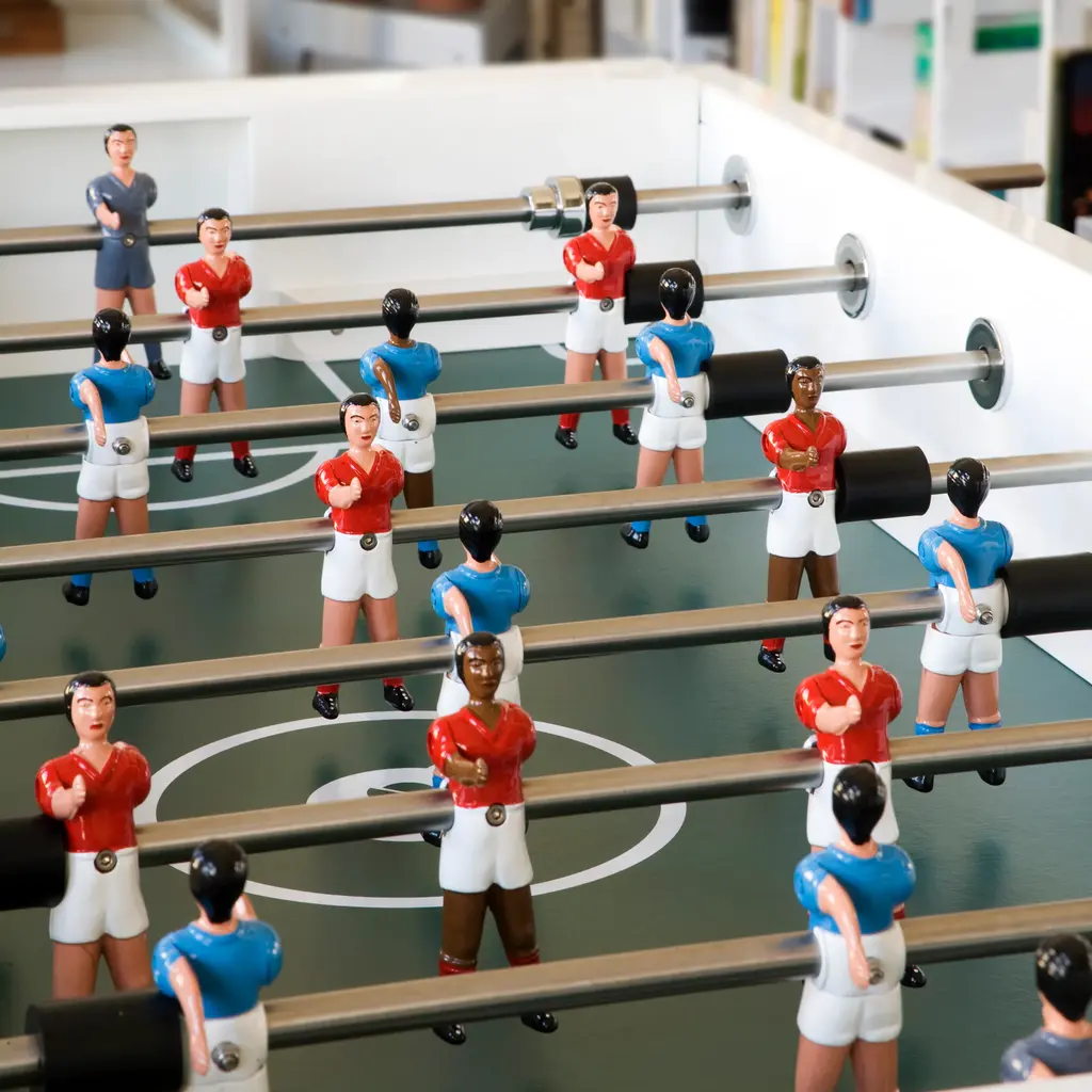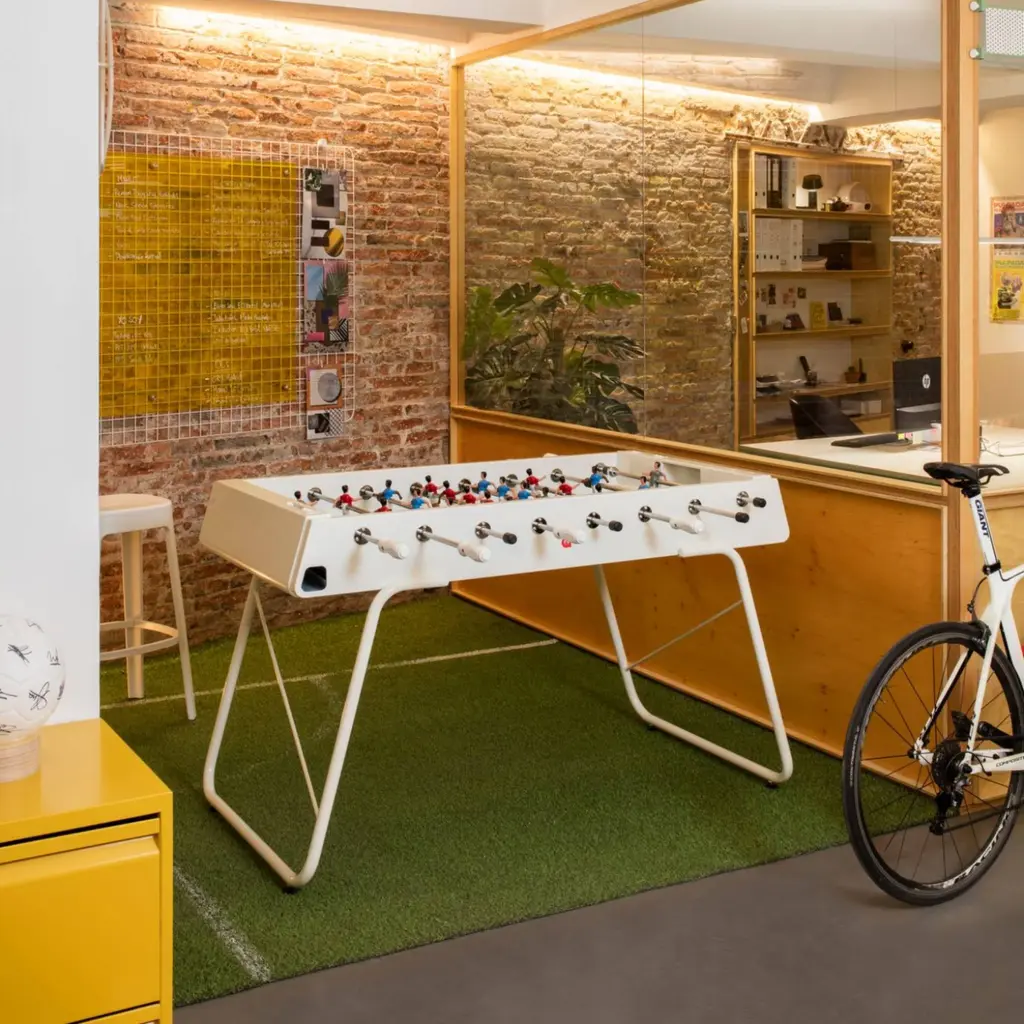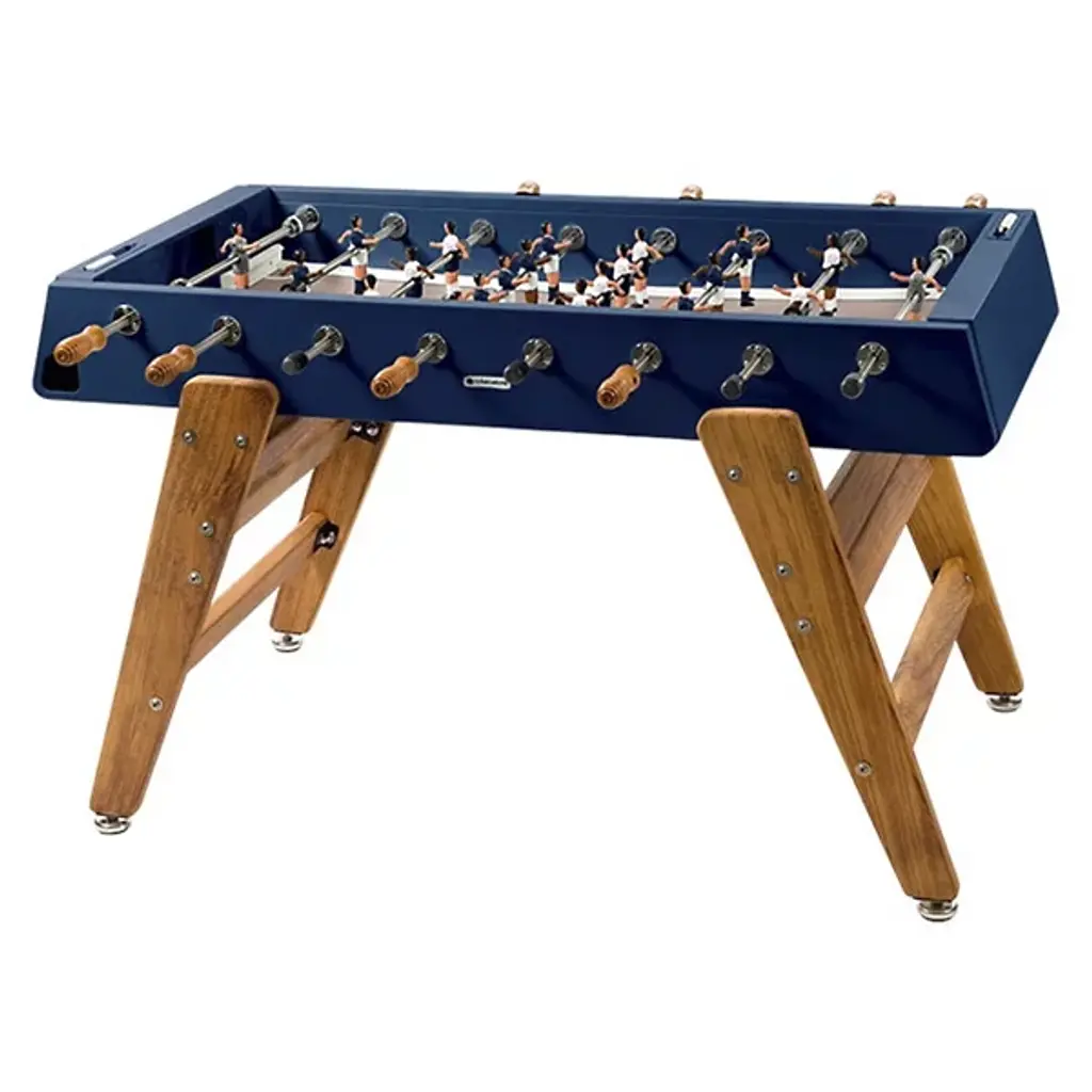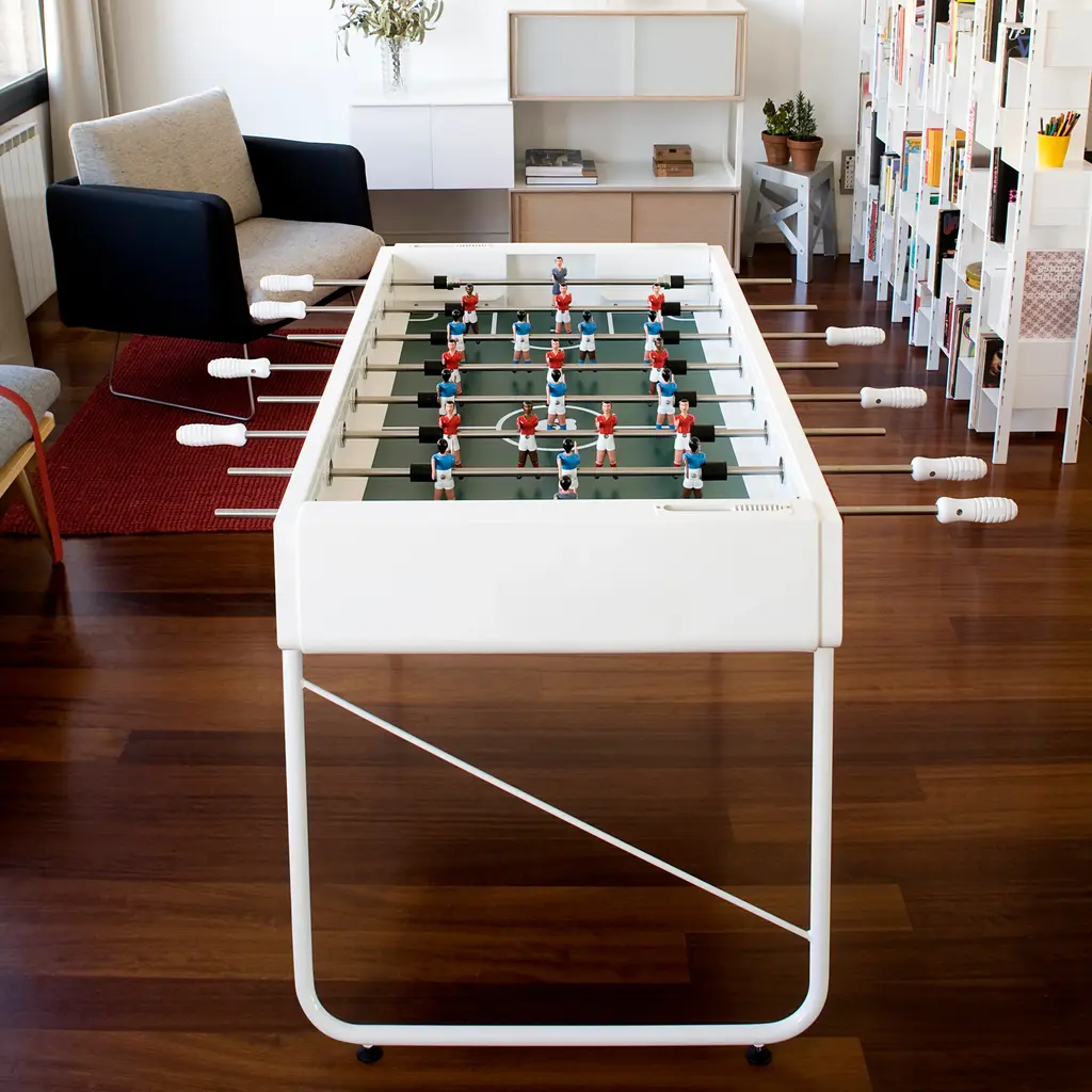 An all-terrain foosball table for the all too-dedicated foosball competitor. It goes both ways, too: play it indoors or outdoors. The folks at Barcelona-based RS Barcelona created a foosball gaming table with no plastic parts and entirely made of weather-resistant steel. The steel is coated in an electrophoresis process to keep shiny and new for endless games. This is the new RS#3 model, lighter than its predecessor by 20 kilos so it can be easily relocated from room to room, poolside to terrace. At the current 69 kilos (that's 152 pounds for you not on the metric system) this lightweight champ still withstands rigorous play as we learned first-hand at a fundraiser for breast cancer research held at one of our favorite design hubs here in downtown L.A. We loved it so much we brought a red table to our La Brea store. One-year manufacturer's warranty for defects. The table is stateside and ready to ship.