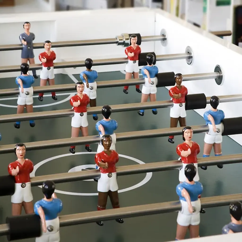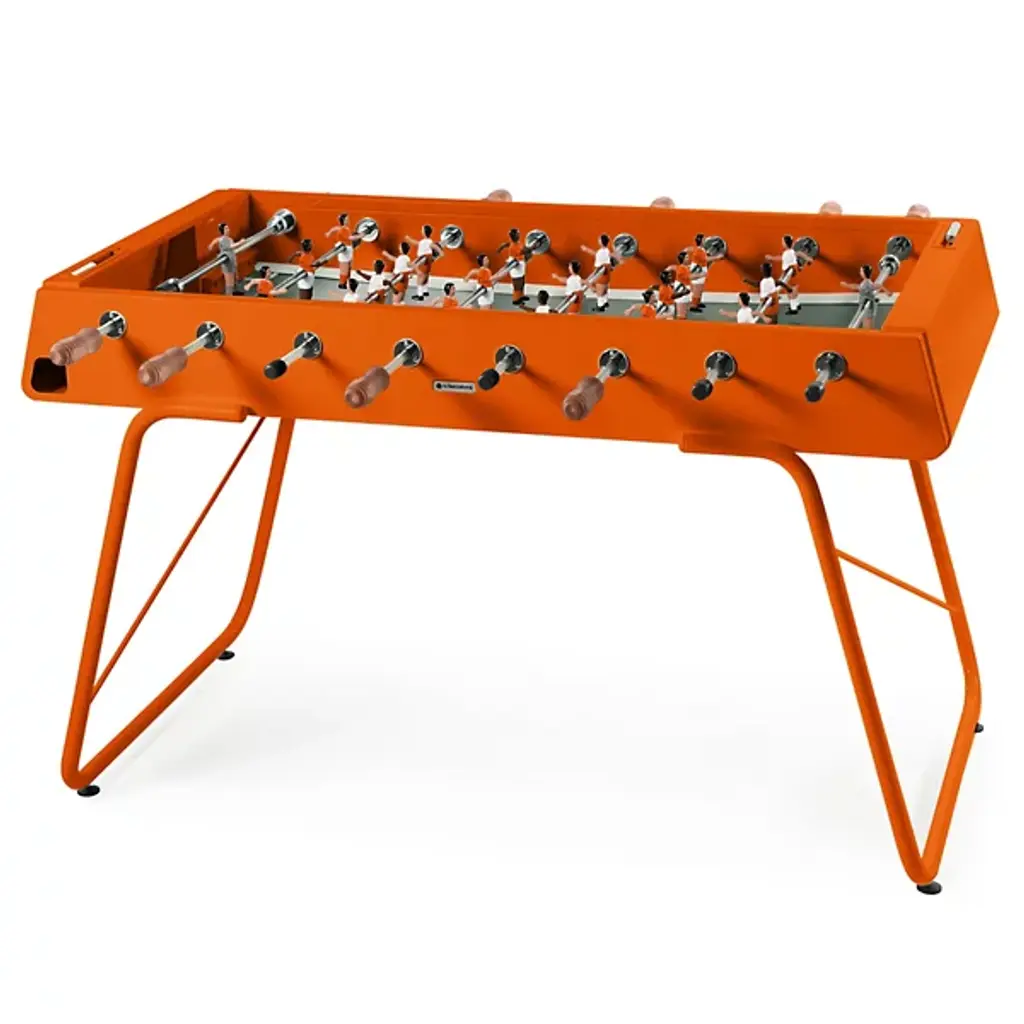 With the RS Barcelona RS3 Football Table, you never have to leave home to find fun and a little healthy competition. This beautifully designed foosball table is made entirely out of steel that's coated in a durable polyester paint, with a similarly tough HPL field and a colorful bunch of cast aluminum players. Safe for use outdoors or in.