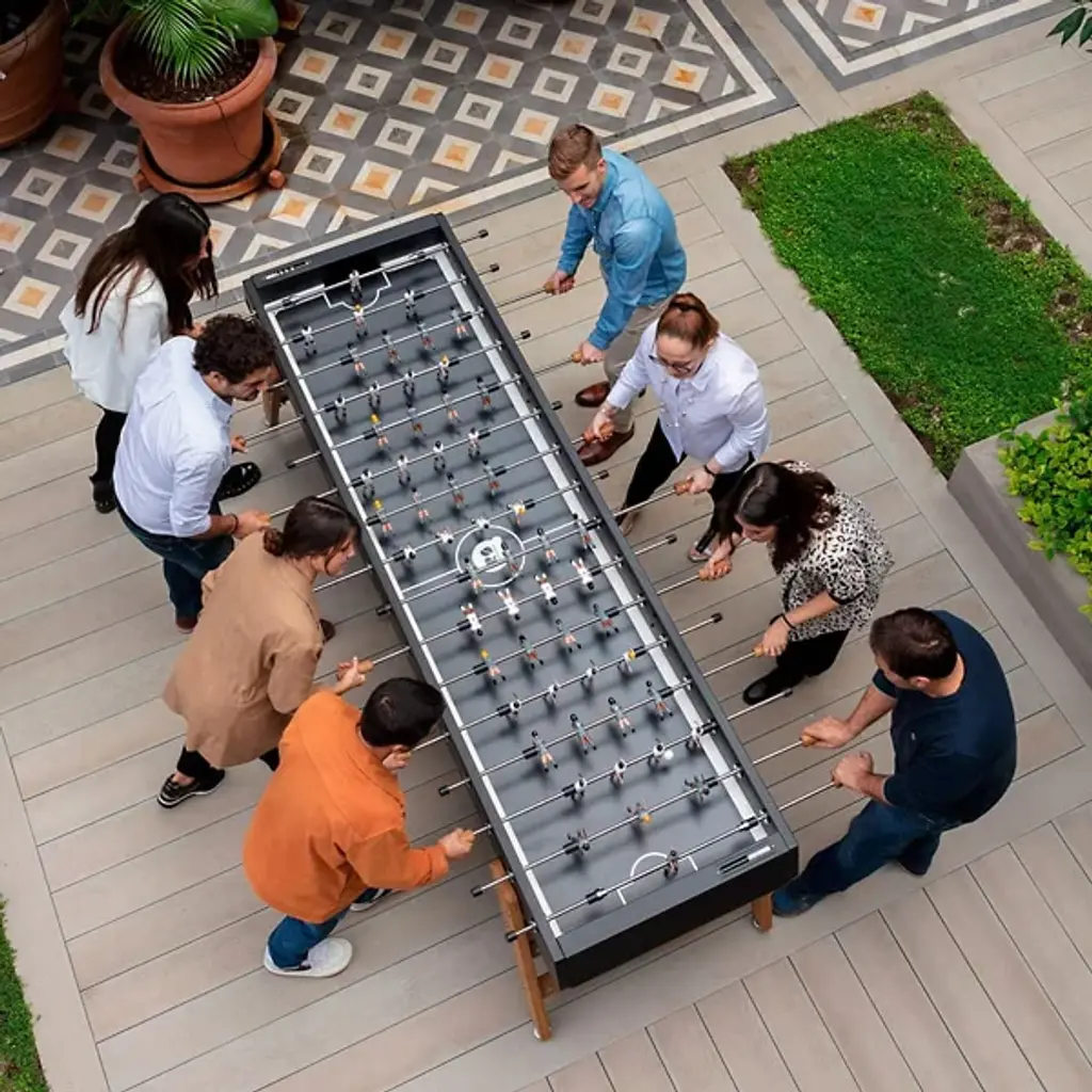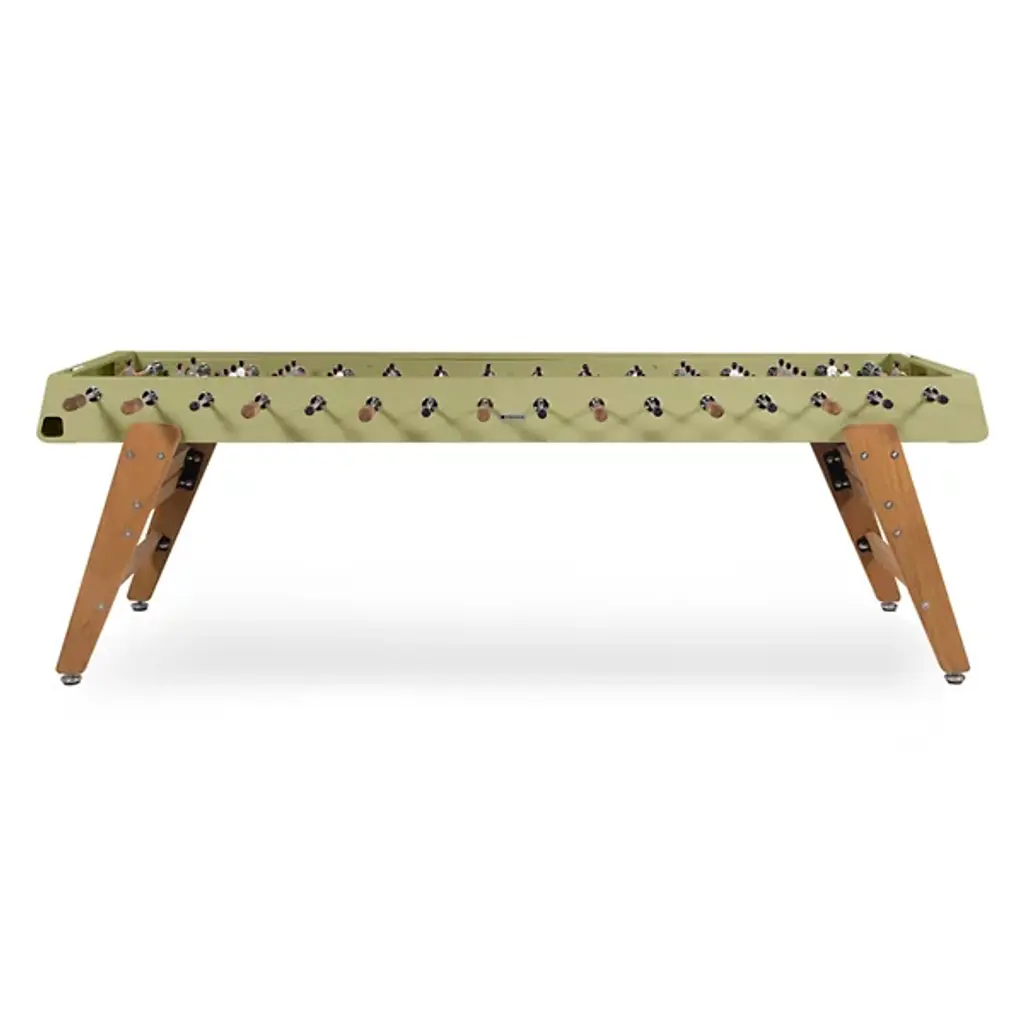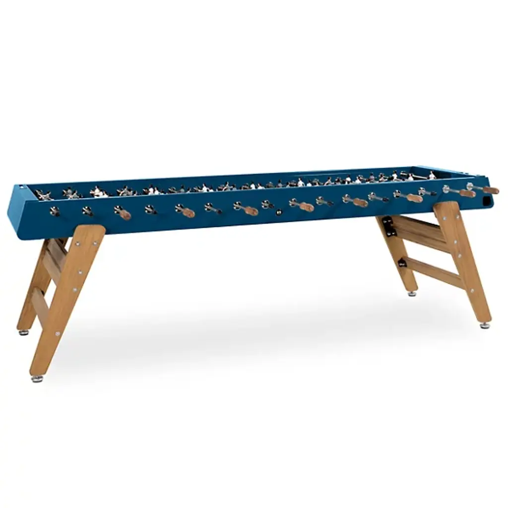 Get your game on with the RS3 Max Foosball Table from RS Barcelona and make new friends while triumphing over old ones. Fashioned from robust African Iroko wood, it uses four outward-angled legs to support a similarly beveled foosball table rated for indoor and outdoor use. It extends to an extra length and can be played by at least four people per side at a time. Iroko handles and aluminum players offer additional durability to an already impressive structure, while customization options mean you can design your ideal table, colors, and players with ease, while its tough construction ensures an eternity of epic matches.