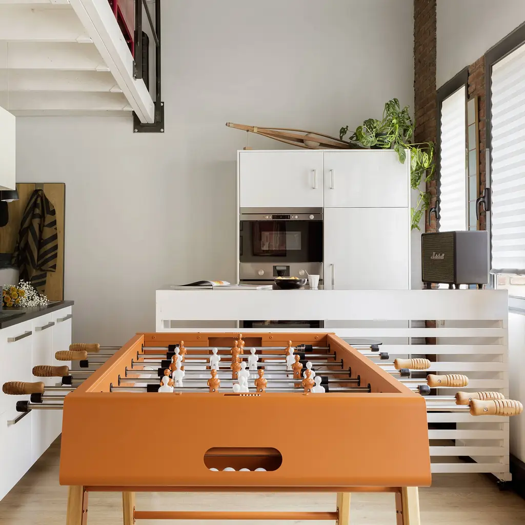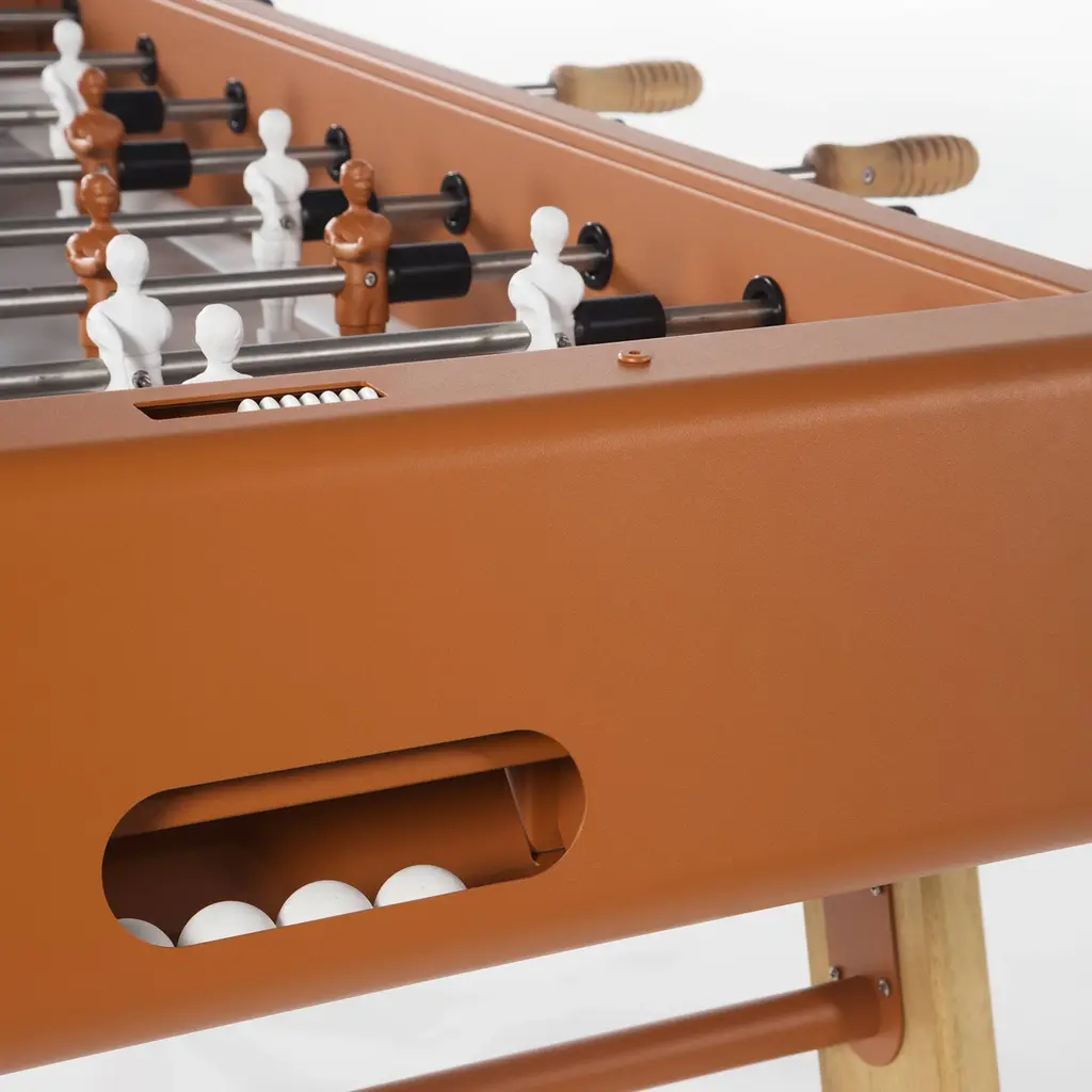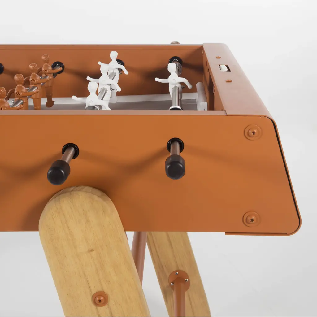Home is where the RS4 scores. Because this latest model in the RS Barcelona range ships flat-packed and is configured for home assembly (1-2 hours) it’s priced lower than its counterpart tables—so no time like now to strike. Flat-packed means a smaller carbon footprint, too, when it comes to shipping and relocating. Rafael Rodriguez’s compact football table specially designed for residential settings and lets the good times roll indoors or out.