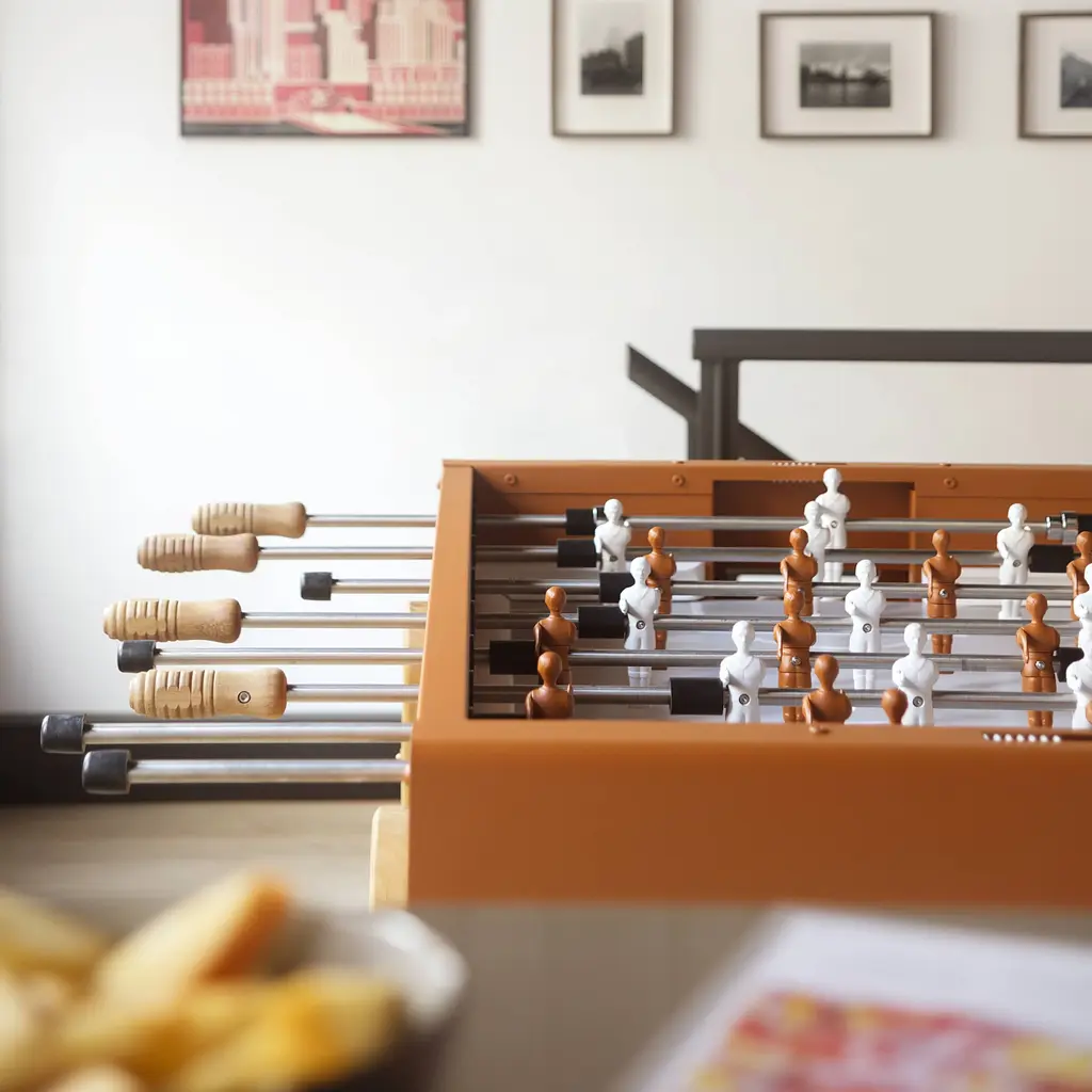 Home is where the RS4 scores. Because this latest model in the RS Barcelona range ships flat-packed and is configured for home assembly (1-2 hours) it’s priced lower than its counterpart tables—so no time like now to strike. Flat-packed means a smaller carbon footprint, too, when it comes to shipping and relocating. Rafael Rodriguez’s compact football table specially designed for residential settings and lets the good times roll indoors or out.