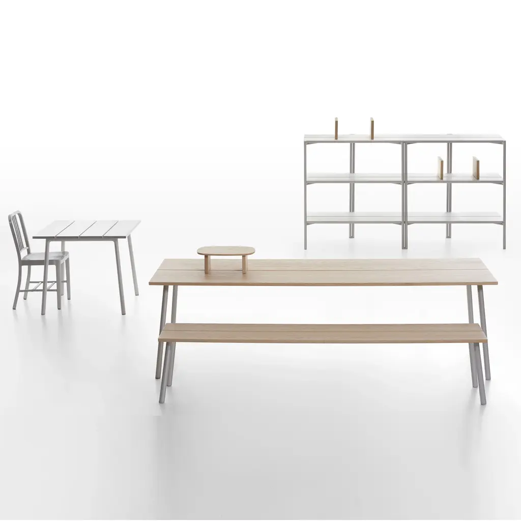 Run is a collection of tables, benches and shelves by Sam Hecht and Kim Colin, designers of the simple and no-nonsense. Run effortlessly finds balance in both indoor and outdoor landscapes suited for meeting, eating, learning, sharing and working. Made of responsibly selected, sustainable materials and engineered to last, Run is right for a multitude of uses at home, for hospitality and in the workplace. Features