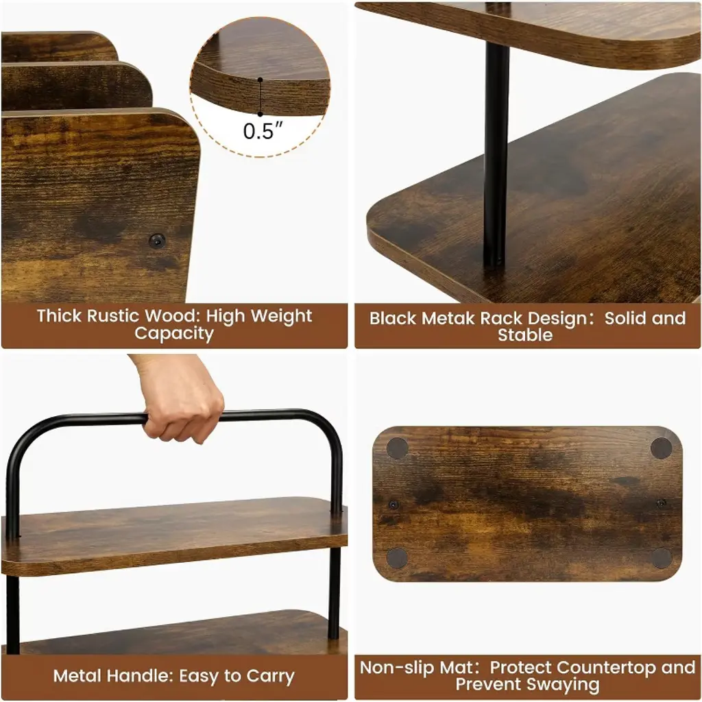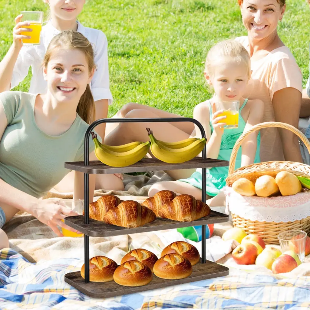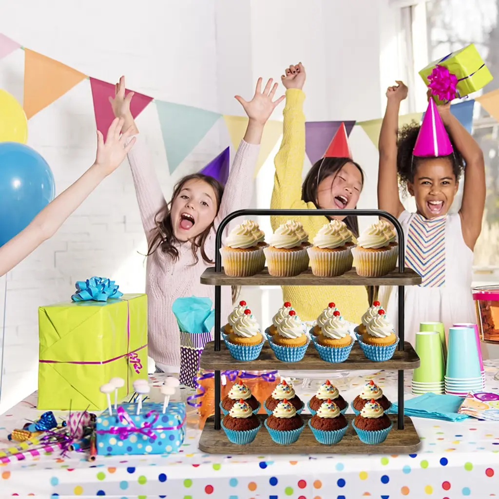 This vintage wooden cupcake stand isn't just a “dedicated display stand” for party desserts—it expands into countless uses: At home, it doubles as a compact kitchen organizer, neatly stacking spice jars and seasoning containers. During holidays, it transforms into a decorative shelf for mini Christmas ornaments, Easter eggs, and more. It even shines as an elegant dessert display stand at small markets or baking gatherings, drawing admiring glances. Its three tiers with a convenient handle make it easy to move and reposition. Whether at parties or in daily life, its vintage charm and practical design add a touch of unique style to any space.