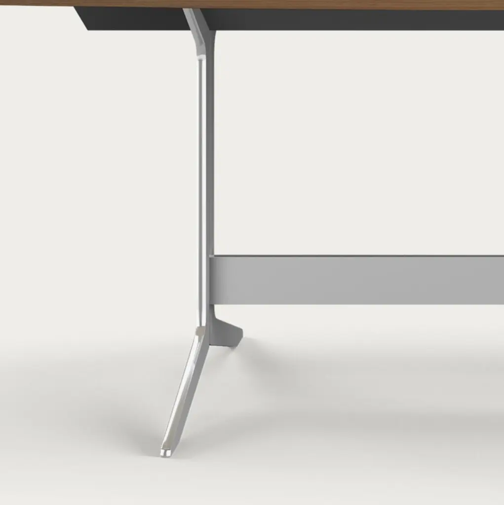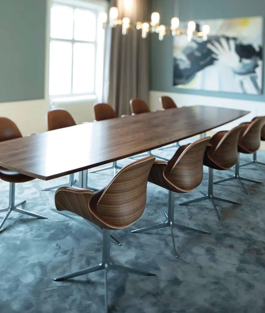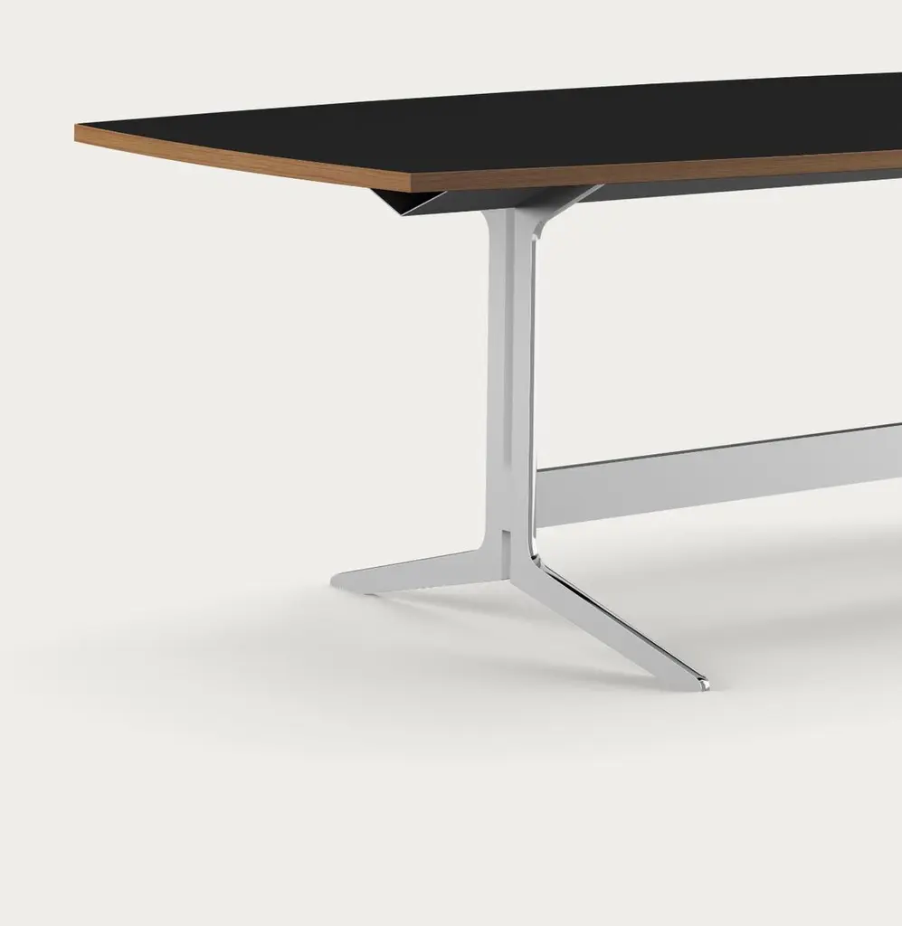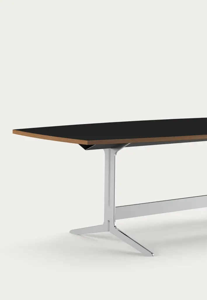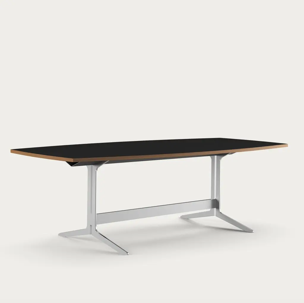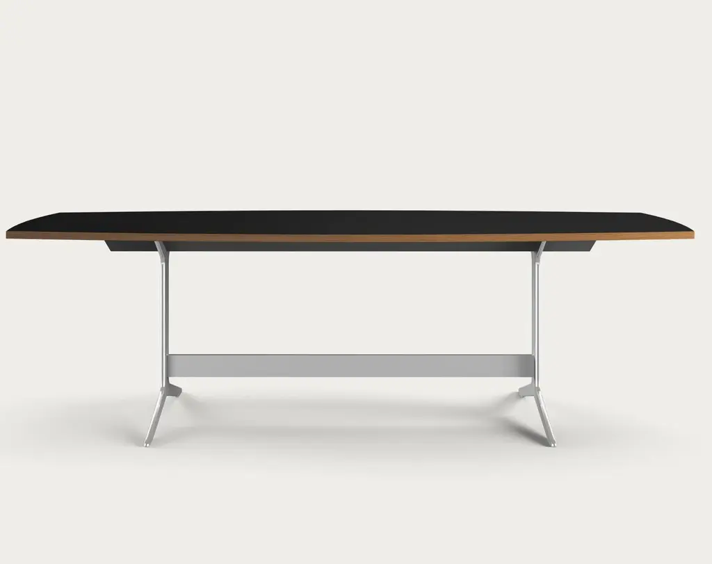 Salto and Sigsgaard Council Table Tabletop Curved: Black Linoleum + Solid Edges: Oak Dark Oil For One Collection.The design duo Salto & Sigsgaard had their winning bid from the Trusteeship Council Chamber in mind when they designed an exclusive series of conference tables. The tables are designed to suit the Council Chair and the series is perfect for exclusive interior solutions.General InfoDesign by: Salto & SigsgaardYear: 2011Dimensions:KT 8324 (curved)L 240cm x W 110cm x H 72cmKT 8424 (rectangular)L 240cm x W 110cm x H 72cmDimensions for further Council Tables options are found in the product sheet.SpecificationsModel and materials:Tabletop: Oak, ash, walnut, teak veneer or linoleum w/ solid edges.Legs: Polished aluminium.The series is available with a tabletop in linoleum or veneered oak, walnut, teak or Oregon pine with solid edges. The legs are cast aluminium with a polished finish. Furthermore, they are provided with a system for neatly managing cables. The tables come in three sizes with a rectangular or barrel shaped tabletop.Important information regarding images of products:Please note that some of the images show other colors and variations of the model, these images are only to present interior design proposals. The item that is selling is on the first image.Important information regarding color(s) of products:Actual colors may vary. This is due to the fact that every computer monitor, laptop, tablet and phone screen has a different capability to display colors and that everyone sees these colors differently. We try to edit our photos to show all of our products as life-like as possible, but please understand the actual color may vary slightly from your monitor.About Designer: Since 2003 Kasper and Thomas have worked together, from their studio in Copenhagen. With the first prize in the Danish Arts Foundation’s competition; ‘New furniture for the UN headquarters’, they moved into furniture design together. Since designing the Council Chair, Kasper and Thomas have been involved in several projects with Onecollection.Thomas Sigsgaard was born in Copenhagen, Denmark on July 20, 1966. Graduated from The Royal Academy of fine arts in 1995. Employed at PLH architects from 1995 – 1998, and Vilhelm Lauritzen architects from 1998 – 2001. Own studeo; ‘Over vandet’ Architects from 2001, mainly designing for private clients. Main works: ‘West View’, ‘S house’, ‘HS2’, ‘SLA-house’, ‘TITAN’ and ‘HCA-Penthouse’. Teaching at DIS (Danish International Study program) architecture and design program from 2001 – 2006. Started office (Salto & Sigsgaard) together with Kasper Salto in 2005. Awarded: National Arts Foundation, National Bank’s Jubilee Fund, The merchant LF Foghts Fund, Knud Højgaards fund.Kasper Salto was born in Copenhagen, DK on February 14, 1967. Graduated cabinet maker in 1988. Masterpiece honoured with a silver medal. After that graduated 1994 from the Danish Design school. As a student, he had one semester at Art Center, college of design (Schwitzerland). In 1996 he was teaching at The Royal Acadamy of Fine Arts. Between 1994 and 1998, he worked for designer Rud Thygesen, who is a famous Danish designer in the field of furniture. It was at that time he met Peter Stærk: their friendship would have a deep influence on his professional life. In 1997, he designed the Runner chair for Peter Stærk who made the chair famous in Denmark, but also abroad. From 2006 the office is situated in the middle of town. He works mainly for the Company’s; Fritz Hansen, Onecollection and Stærk design. Salto has received a number of design awards for his work, lately the The Furniture Prize 2003, Engelhardts Mindelegat 2005, and latest The Finn Juhl Prize 2010.About Manufacture:Established in 1990 and initially known as Hansen and Sørensen, Onecollection has cultivated its reputation not only through original contemporary designs but notably as the company behind the esteemed brand House of Finn Juhl. Our guiding principle is clear and crucial: we only embark on a project, whether it’s creating a new chair, curating an interior, or fostering a renowned brand, if it emanates positive energy from the start. Below explore our brand’s philosophy, gain insights into our production methods, and discover the rich history that defines our company.From our location in a small spot as far west as you can go in Denmark, we’ve captivated clients worldwide, ensuring they believe in our projects. While our journey encountered its share of challenges, our unwavering passion and enthusiasm have continuously persuaded stakeholders, including initially skeptical banks, to support us. This perpetual commitment and belief in OneCollection are why our presence continues to thrive today.Established by Ivan Hansen and Hans Henrik Sørensen in 1990, the main ownership remains with the two founders who guide a team passionately dedicated to the values and mission of the company.From the very beginning, our journey has been self-propelled, building a reputable furniture business grounded in core principles such as passion, quality, collaboration, trust, and humour. Our depth of knowledge in the furniture industry and exceptional Danish furniture design has been pivotal, coupled with a perpetual desire to work autonomously, ensuring freedom and responsibility in our decision-making processes.Driven by a perpetual ambition to elevate OneCollection as one of Denmark’s paramount design companies, we have always strived for excellence in crafting culturally significant, high-standard furniture designs. Our path has often strayed from the conventional, embracing a unique and sometimes unacademic approach, fueling our journey through intuition and courage to stand alone when necessary.Envisioning our future, we stand firmly as a free and independent company, opting for organic growth that is firmly rooted in our values.