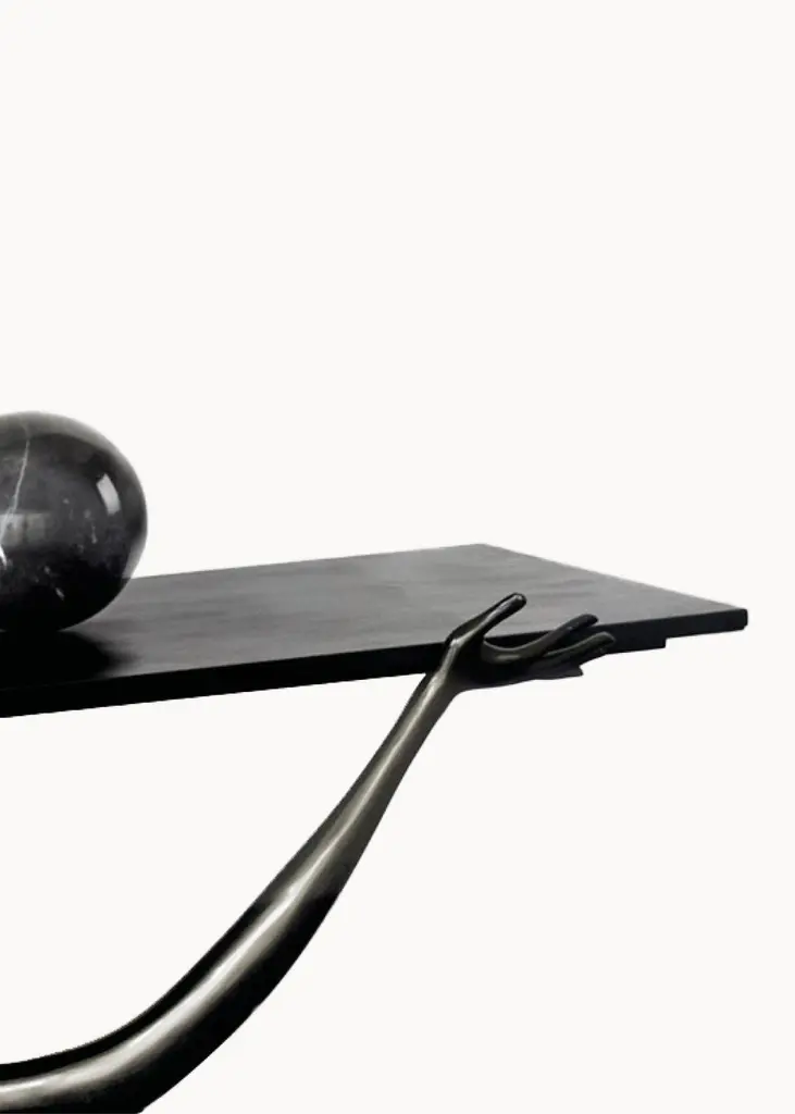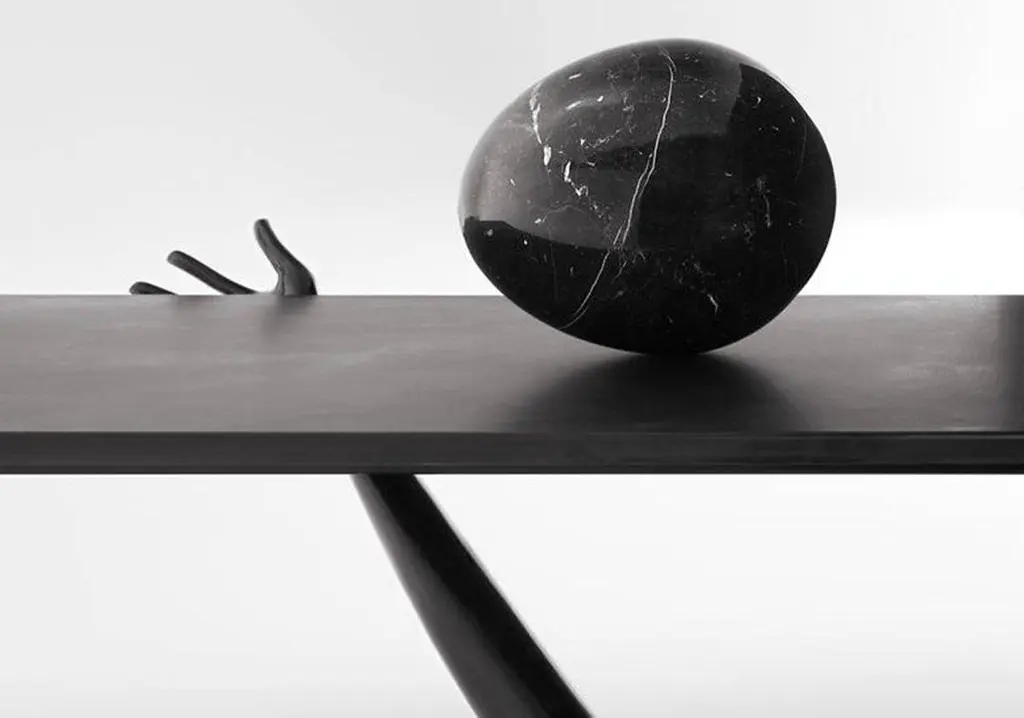 Elevate your space with the rare and exquisite Salvador Dali Leda low table, a true masterpiece of art and design. Designed by the surrealist master himself and manufactured by BD, this limited edition Black Label piece is sure to catch the eye of discerning collectors and design enthusiasts alike.Crafted with the utmost attention to detail, the table features legs in a striking black patina that are left unvarnished for a unique, textured finish. The brushed and varnished brass tabletop complements the legs beautifully, while a Nero Marquina marble egg sits atop the table, adding a touch of luxurious sophistication.With dimensions of 51 x 190 x 61 H.cm, this low table is the perfect size for any room, creating a focal point that is both functional and visually stunning. The Black Label collection was produced in a limited edition of only 105 pieces to celebrate the 105th birthday of Salvador Dali in 2009, making this piece a rare find indeed.Every piece of ironwork in the collection is crafted from brass, and the Black Label Leda collection features an artisanal application of a special patina that is achieved through a unique chemical reaction using nitric acid and a gas blow torch. The result is a one-of-a-kind finish that is irregular and dark, adding to the table's overall allure.Invest in this exceptional work of art and design, and add a touch of Salvador Dali's surrealist magic to your home or gallery space. With its exclusive limited edition status and unique design, this Leda low table is a must-have for any art and design collector.Each exquisite piece is meticulously handcrafted by skilled artisans, infusing it with a sense of individuality and artistry. The process of creating each item ensures that no two pieces are exactly alike, as subtle variations and unique characteristics emerge through the artisan's touch. These distinctive qualities may manifest as slight differences in texture, small scratches, or variations in the brass finish, serving as a testament to the authentic craftsmanship and the human element invested in every creation. Furthermore, as part of the inherent charm of these handcrafted pieces, some variations might present themselves as occasional stains or slight tone differences on the surface, adding to the allure of their uniqueness. Embracing these variations, our handcrafted pieces must be considered sculptures, each one telling a story of the artisan's dedication and evoking a sense of timeless elegance that cannot be replicated by mass-produced alternatives. These nuances celebrate the organic nature of the crafting process and contribute to the character and soul of every item, elevating it from mere decor to a cherished masterpiece in its own right.______Leda low table designed by Dali manufactured by BD.Legs in black patina not varnished.tabletop in brushed and varnished brass, black varnished patina.Nero Marquina marble egg on top.Measures: 51 x 190 x 61 H.cmYear: 2009The black label collection came to market in a limited edition of 105 pieces (the age of Dali in 2009).All pieces of ironwork in this collection are made of brass. The Black Label Leda collection has an artisanal application of a special patina (metal dissolved in nitric acid) which is applied to a lightly heated surface accomplished with a gas blow torch. The reaction caused results in an irregular dark finish.