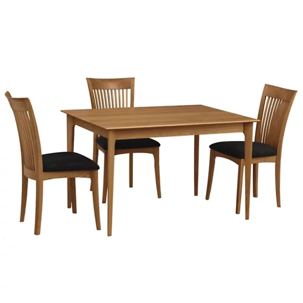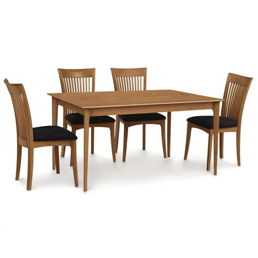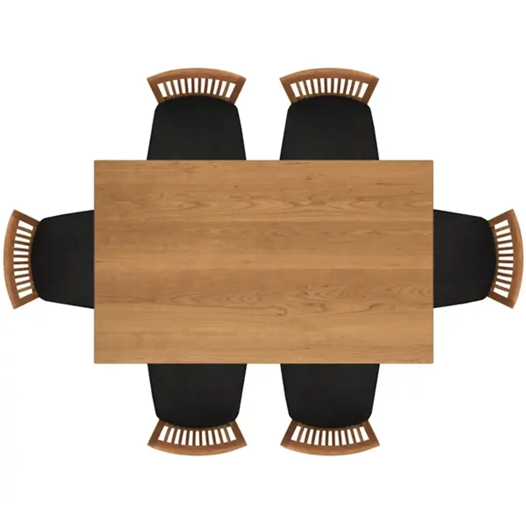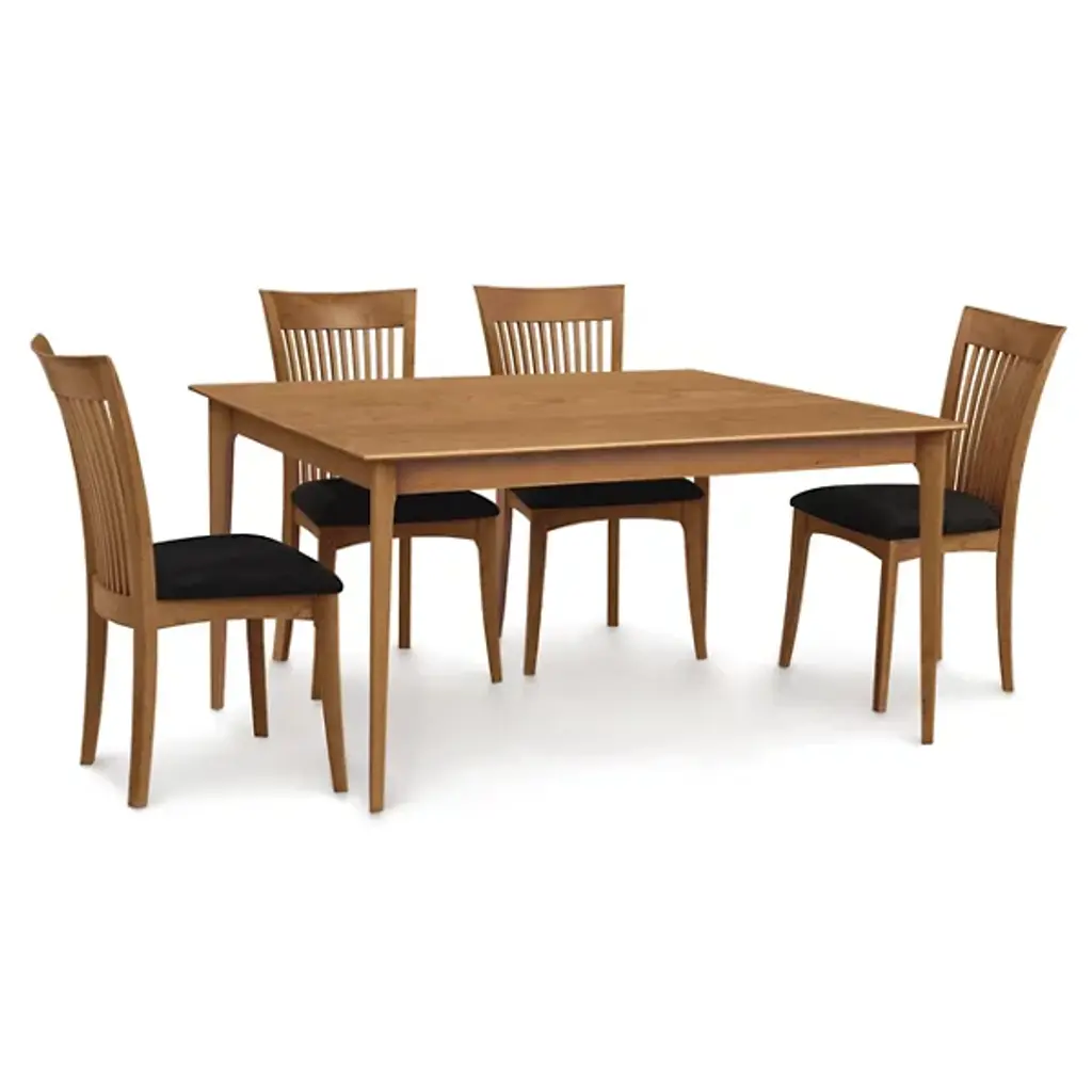 The Copeland Table Sarah Table is a versatile piece both in its overall style and array of possible options. It is available in a range of colors and sizes to accommodate surrounding decor and dinner groups of all sizes. It is made entirely out of solid cherry wood, with a broad rectangular top on tall, slender legs.