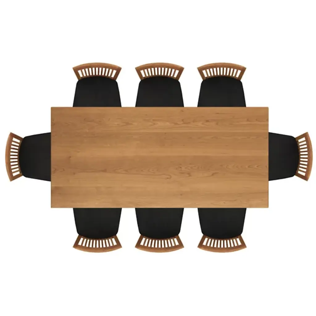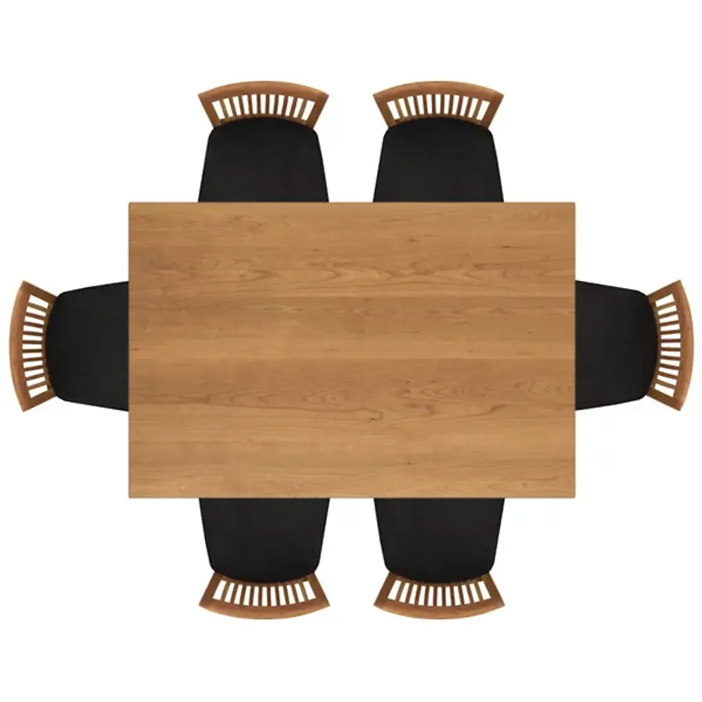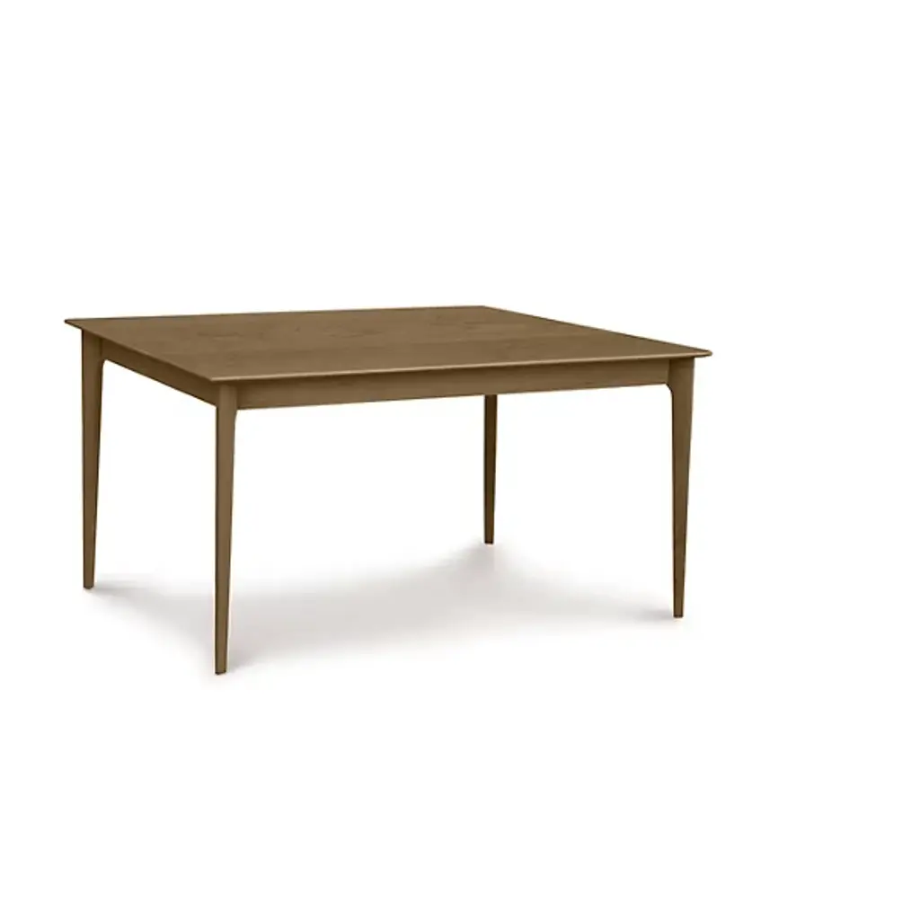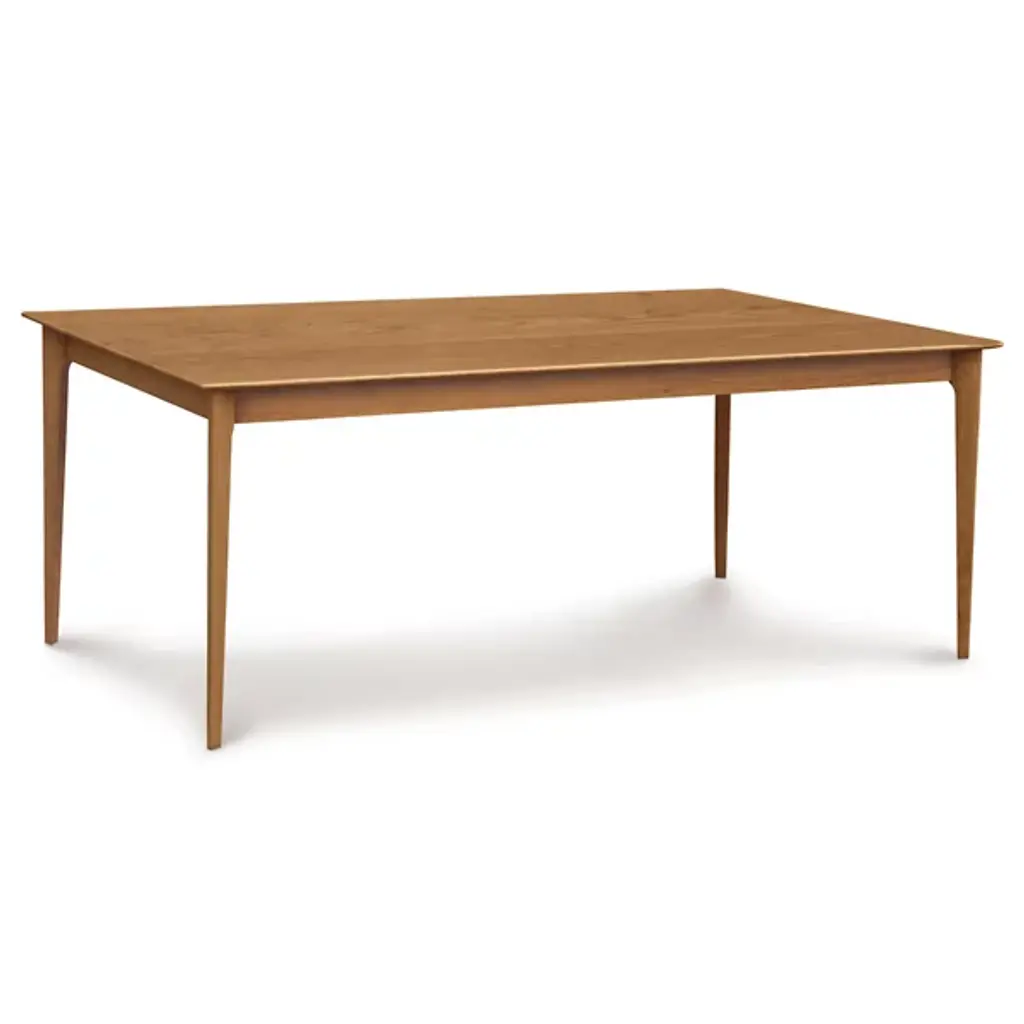The Copeland Table Sarah Table is a versatile piece both in its overall style and array of possible options. It is available in a range of colors and sizes to accommodate surrounding decor and dinner groups of all sizes. It is made entirely out of solid cherry wood, with a broad rectangular top on tall, slender legs.
