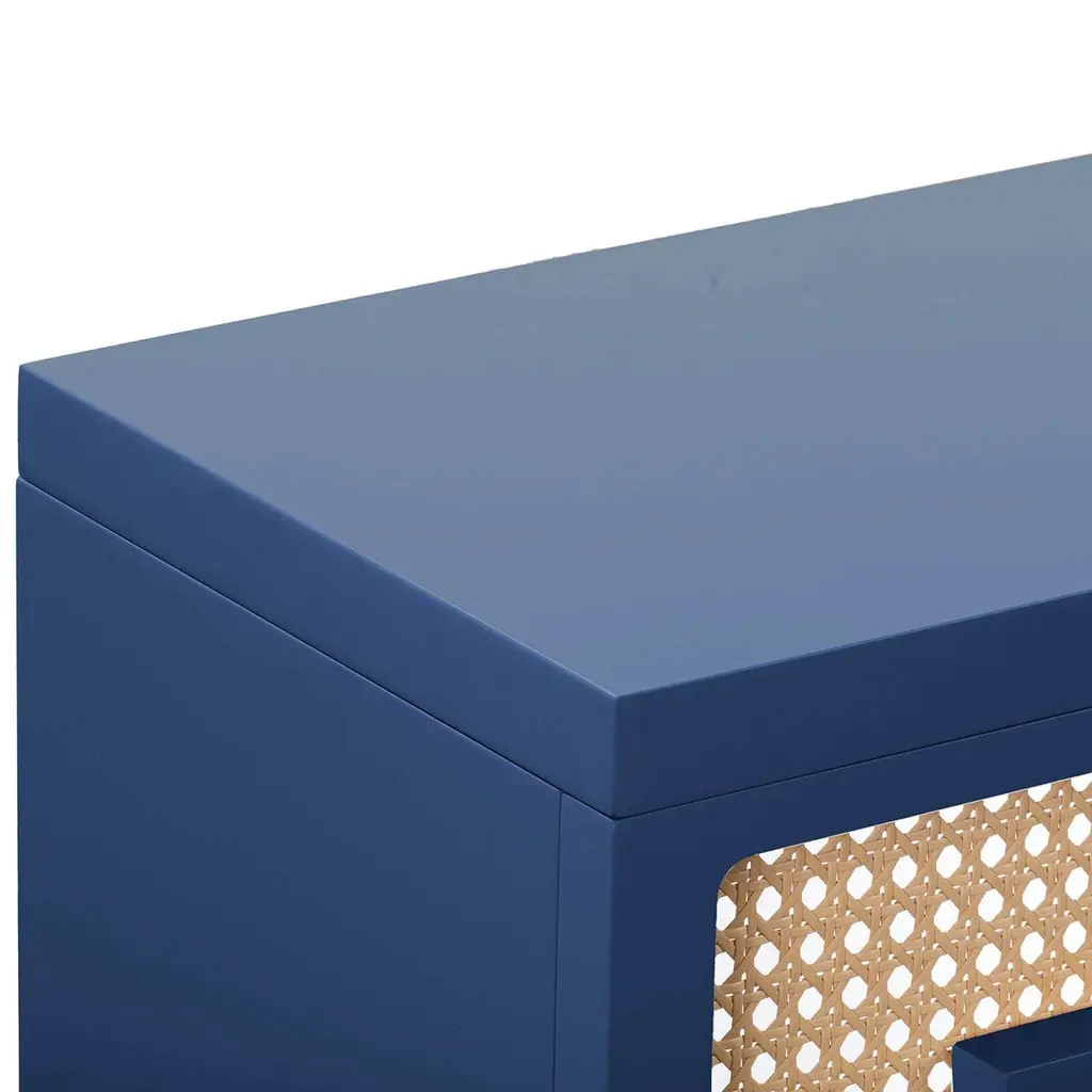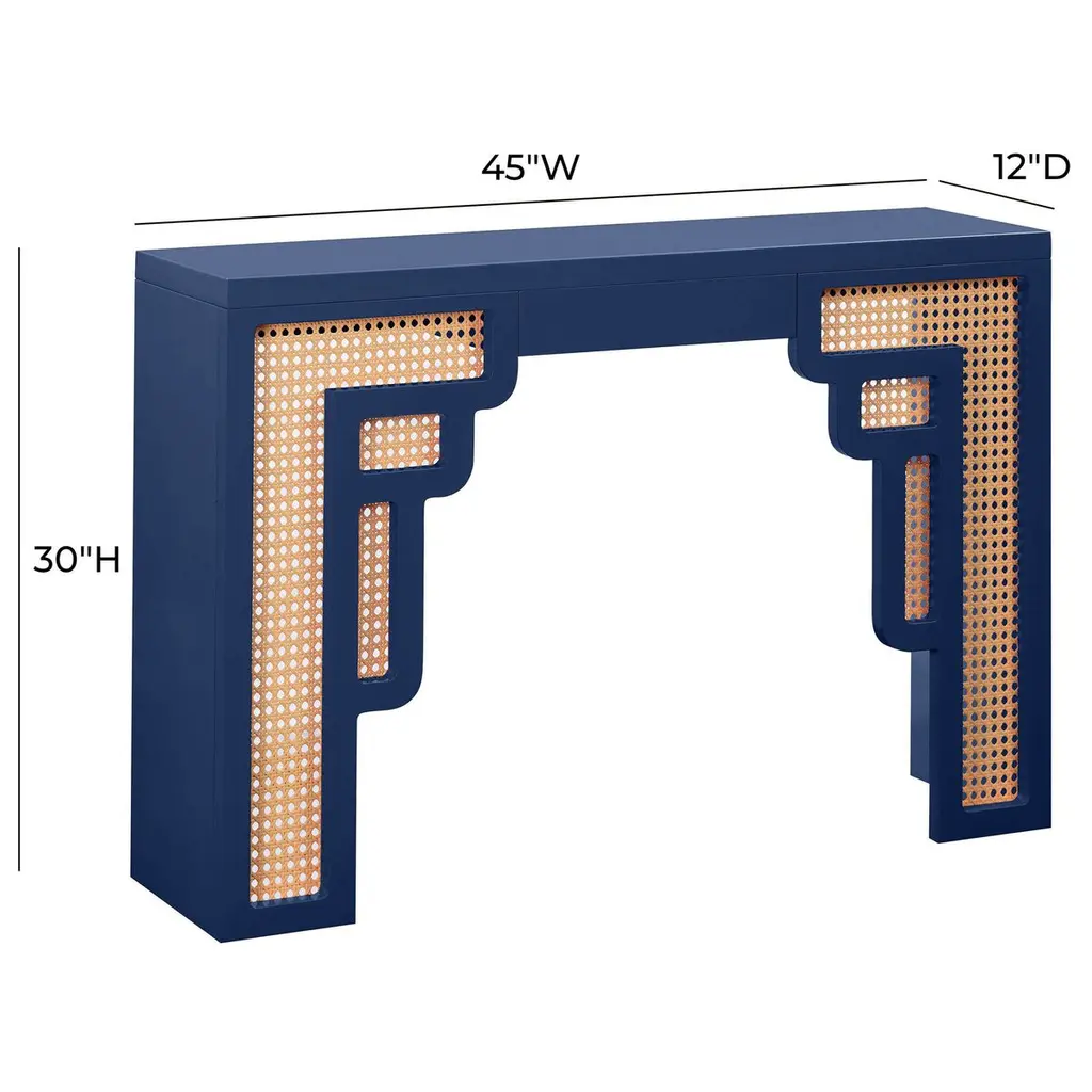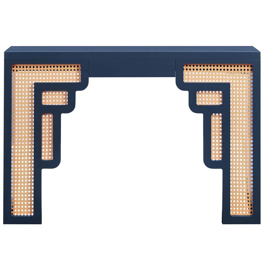 A fresh interpretation of Palm Beach chic, this handcrafted console table pairs curves and straight lines, woven rattan and wood to eye-catching effect.