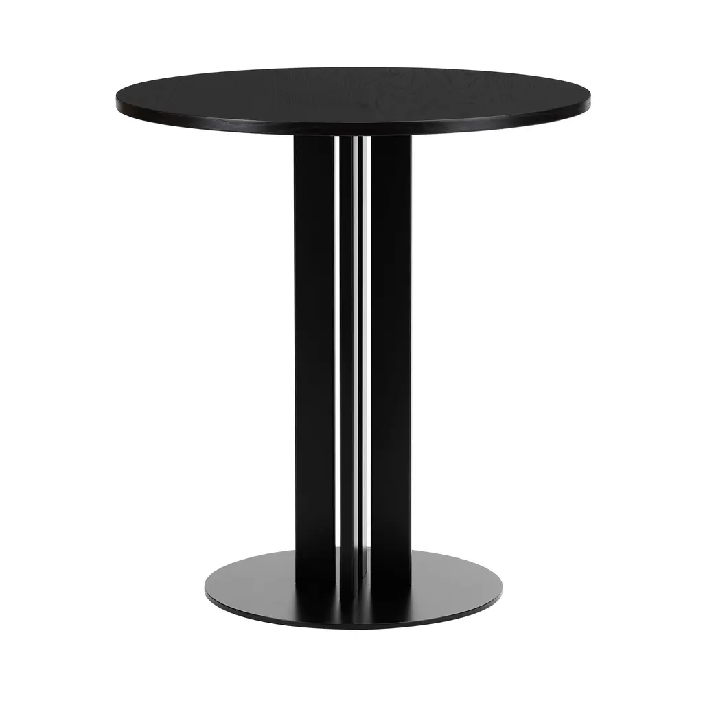Scala's characteristic look features a cluster of 4 columns that change in perspective depending on the vantage point. Designer Simon Legald's play on the classic architectural form makes for a remarkably sturdy base, fashioned from solid steel with a black lacquer finish. The cafe-style tabletop comes in round or square versions, each with a choice of 2 sizes, in either oak veneer, several marble colorations or silvery stainless steel.