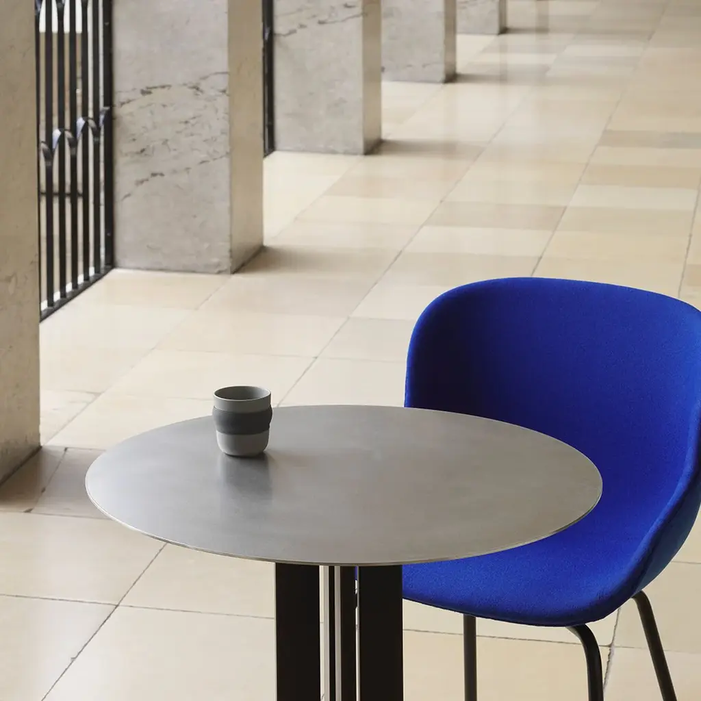 Scala table consist of a powder coated steel base with four poles. The tabletop comes in various sizes and shapes available in marble, veneer or stainless steel. The table is delivered flat-packed and must be assembled using the included tools. The tabletop is mounted with four screws.The marble tabletops are treated with a surface treatment that penetrates into the material and thereby provides a long-term protection. The surface should not be exposed to acidic foods or beverages, which can leave stains on the surface.