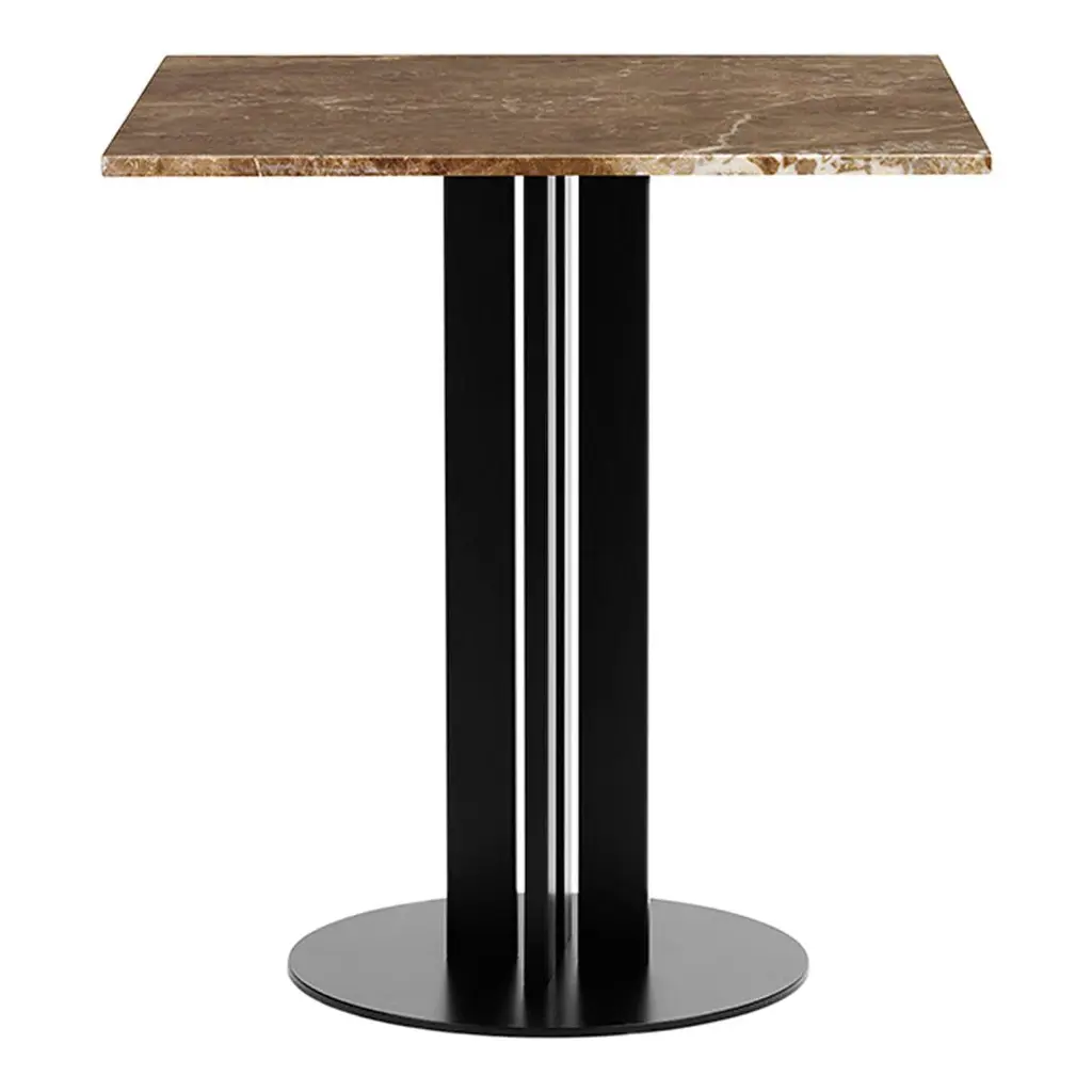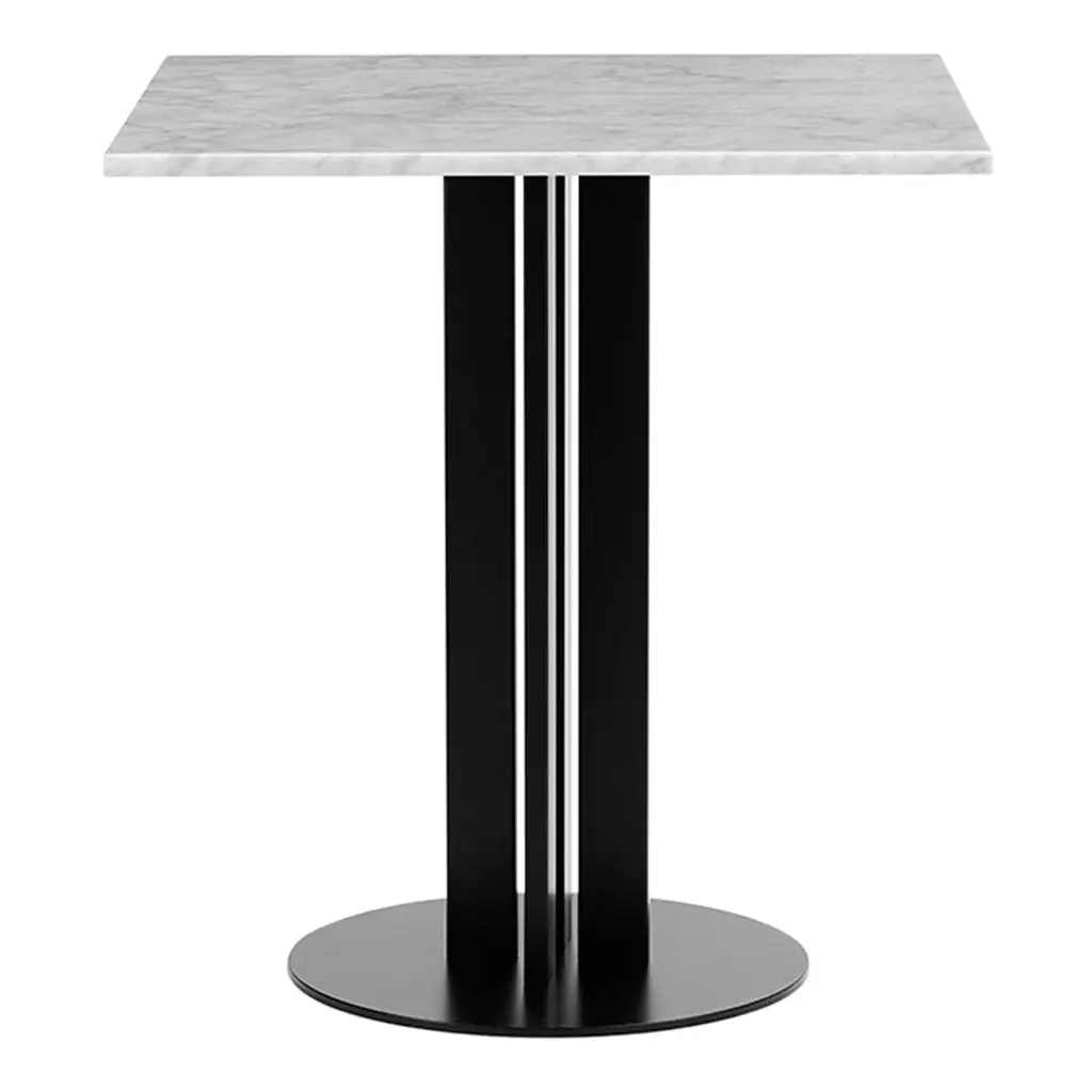 Scala table consist of a powder coated steel base with four poles. The tabletop comes in various sizes and shapes available in marble, veneer or stainless steel. The table is delivered flat-packed and must be assembled using the included tools. The tabletop is mounted with four screws.The marble tabletops are treated with a surface treatment that penetrates into the material and thereby provides a long-term protection. The surface should not be exposed to acidic foods or beverages, which can leave stains on the surface.