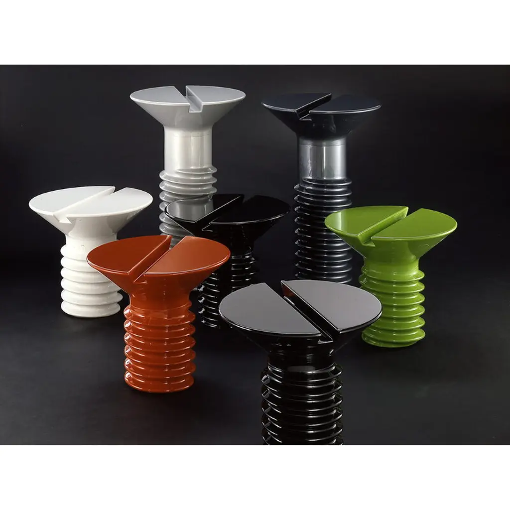 Eero Aarnio's Screw table lifts a familiar object found in every home in a place of honor. Screws are used in most furniture but usually, the aim is to hide them from view. Eero Aarnio's approach to industrial design has always been quite the opposite: he has wanted to make simple, hidden forms into visible objects. The Screw table, designed in 1991, turns the familiar into something completely different, growing an invisible little fixture into a gigantic size. Like other Aarnio classics, the Screw table is made of fiberglass. This personal table will amuse the viewer and add a touch of quirkiness and humor to the interior, but it will also feed the imagination and inspire – just as Eero Aarnio hopes.