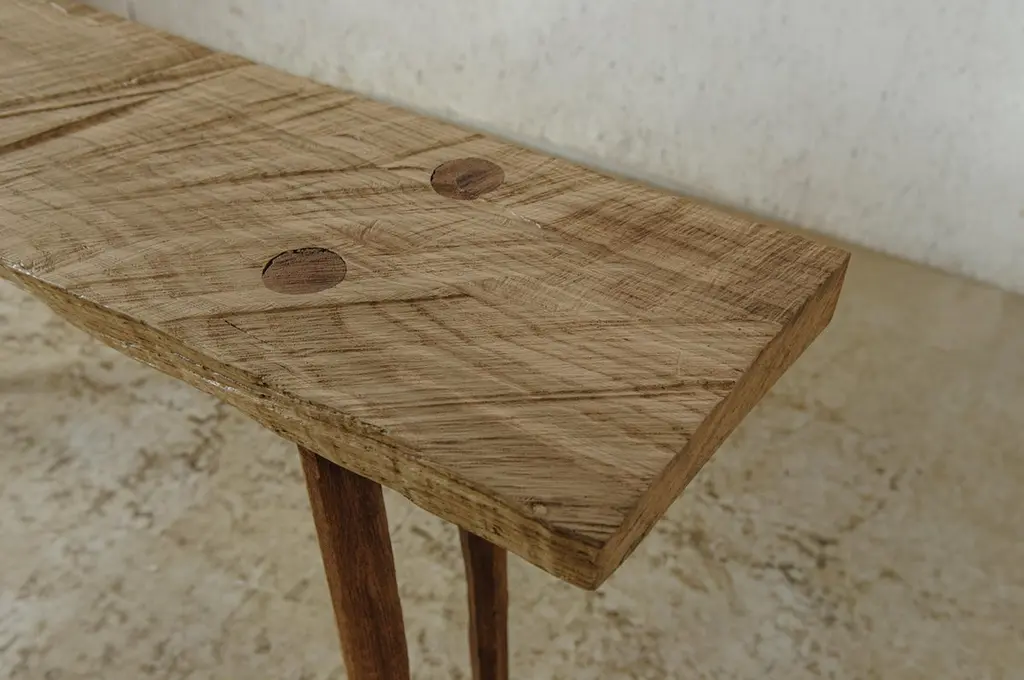 Sculpted Bench Or Side Table N13 In Solid Oakwood