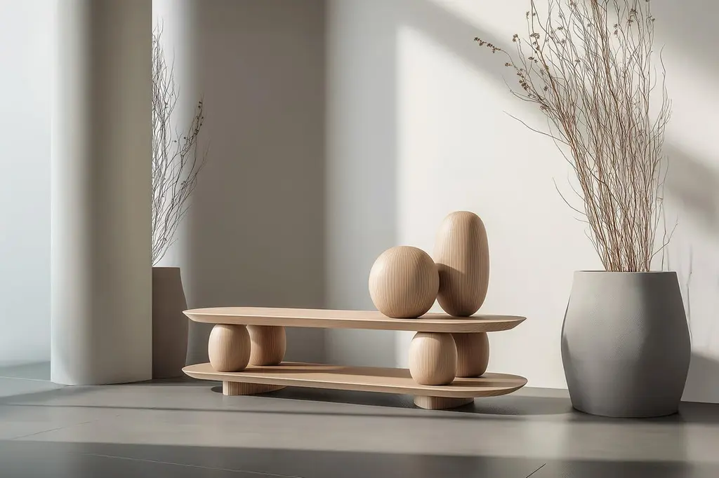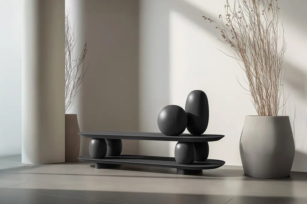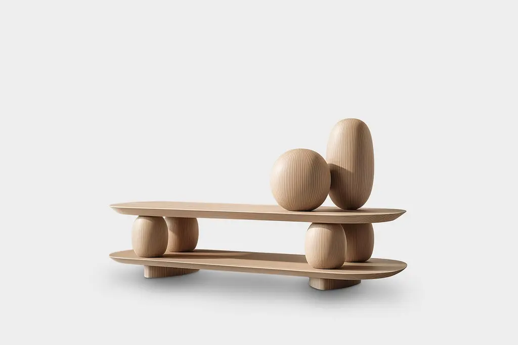 Sculptural Base Low Table Sereno No31, Designed by Joel Escalona—Sereno CollectionDesign by Joel Escalona for NONOWhen practicality becomes art, the result is the Sereno Collection by Joel Escalona for NONO. This collection redefines tranquility through exquisite credenzas and sideboards that stand alone in their beauty, embodying a serene simplicity that everyone can feel.The Sereno Collection celebrates minimalism with pieces that don’t need additional decoration to make a statement. Each credenza and sideboard is adorned with unique wooden sculptures, reminiscent of a tranquil pebble, thoughtfully placed to enhance its elegance. These pieces are crafted from solid wood, adding character to each design. Standard models use red oak, but customization with various woods and finishes like walnut, teak, and burnt oak is available to perfectly suit your style and space.Founded in 2011 by Joel Escalona, NONO has over a decade of experience producing high-quality interior furnishings. Joel’s work transcends categorization, blending creativity, productivity, and introspection. His multifaceted approach, encompassing drawing and sculpture, infuses his designs with lyricism, humor, and poetry.NONO's philosophy centers on transforming everyday beauty into extraordinary art forms, seamlessly blending functionality and aesthetics. Each Sereno credenza and sideboard exemplifies this philosophy, offering both beauty and practicality. When you choose a piece from the Sereno Collection, you’re not just acquiring furniture; you’re bringing a piece of art into your home.Each piece in the Sereno Collection makes you feel serene and tranquil, embodying a minimalist elegance that doesn’t require additional ornamentation. The beauty of these designs is that they are complete in themselves. You don't need to add anything else to the compartments or surfaces; they stand alone, transforming any living room or interior project with their quiet sophistication.Experience the serene elegance of the Sereno Collection by Joel Escalona for NONO, where every piece speaks softly yet powerfully, transforming your space with its quiet beauty.———Some details to consider when placing an order with us:• Catalog images are digitally generated. Actual products may slightly vary in texture, grain, and final finish due to natural material differences. Despite these variations, our expertise ensures each piece maintains high quality and matches the intended design.• All of our products are made to order, and the lead time for standard products is estimated to be 9 to 12 weeks, plus shipping time. However, special pieces or sculptures may require a longer lead time.• We offer customization in dimensions and finish for all of our furniture pieces, which may result in additional charges.• We only facilitate freight services by a third party. The client is solely responsible for any associated import/export taxes, as well as any necessary customs paperwork.• We are not responsible for any damages that may occur during shipping or for any customs-related delays.