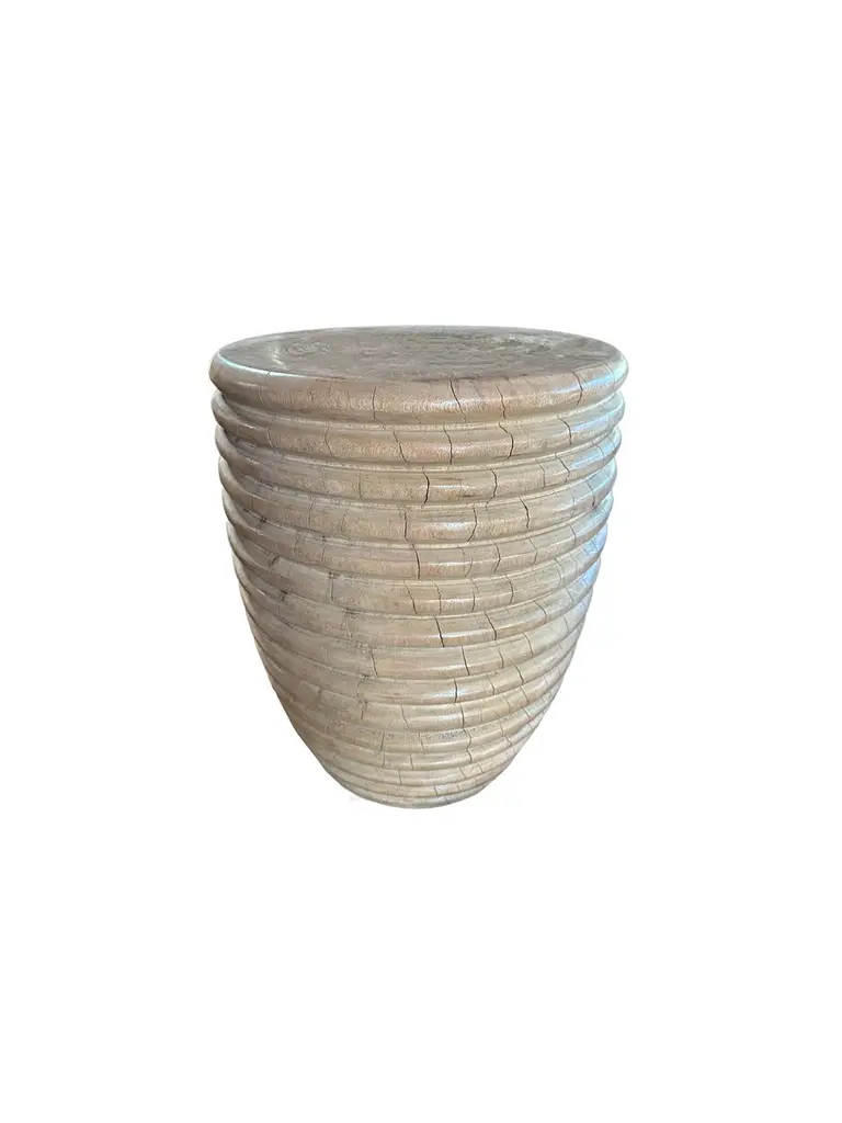 Sculptural Side Table Solid Mango Wood With Ribbed Detailing