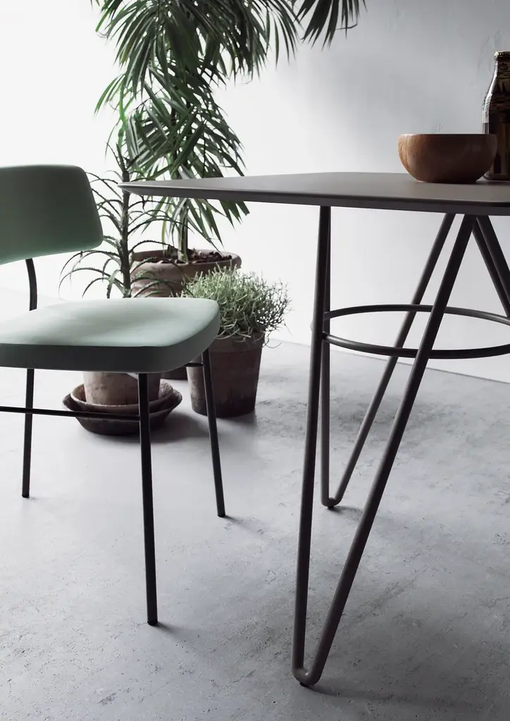 Table for restaurant, bar, hotel, house, terrace. Metal base and top painted, for indoor and outdoor, round top.
