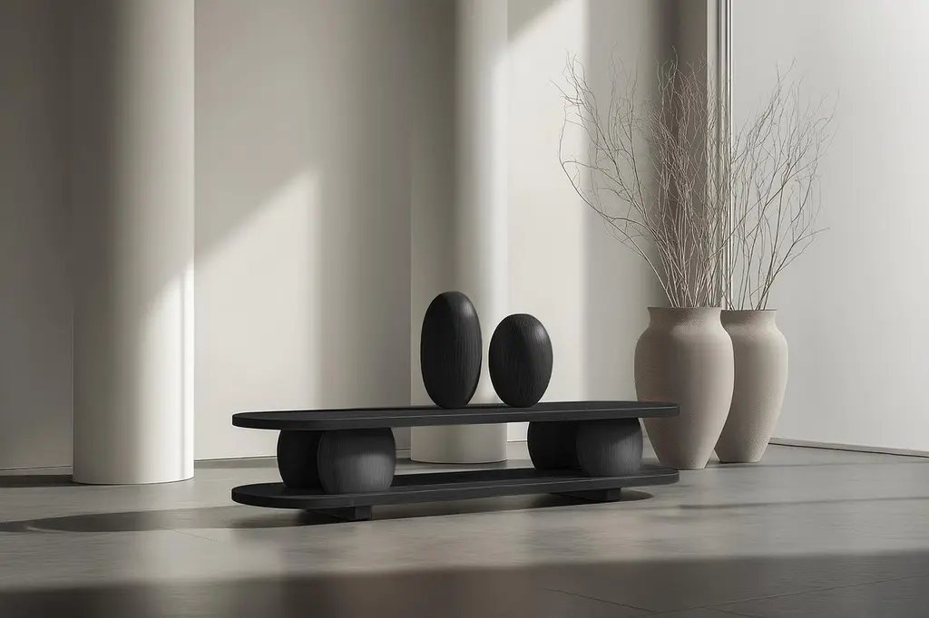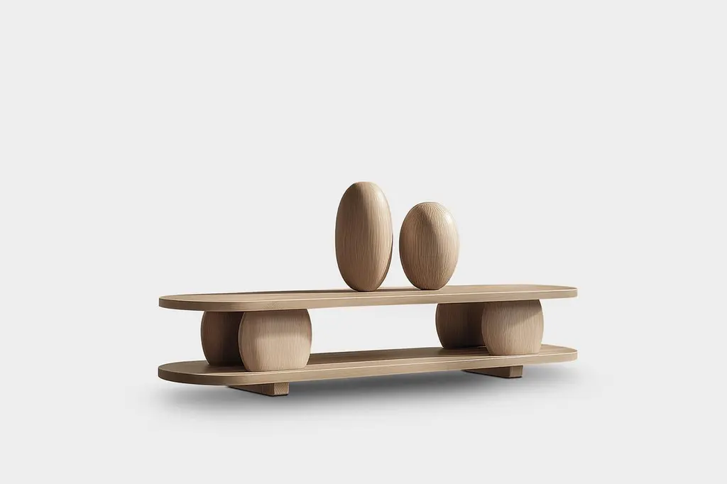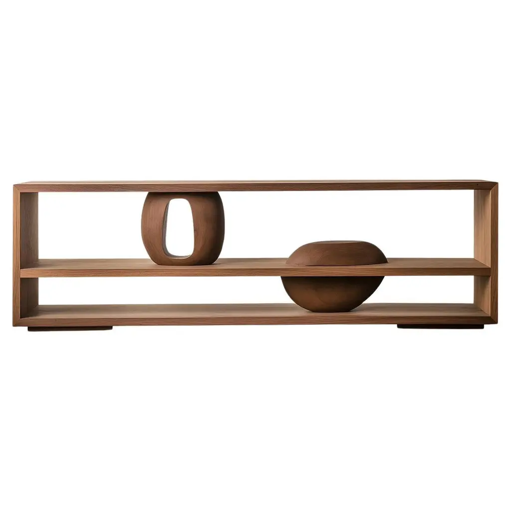 Sereno No33, Console Table with Minimal Wooden Geometry by Joel Escalona—Sereno CollectionDesign by Joel Escalona for NONOWhen practicality becomes art, the result is the Sereno Collection by Joel Escalona for NONO. This collection redefines tranquility through exquisite credenzas and sideboards that stand alone in their beauty, embodying a serene simplicity that everyone can feel.The Sereno Collection celebrates minimalism with pieces that don’t need additional decoration to make a statement. Each credenza and sideboard is adorned with unique wooden sculptures, reminiscent of a tranquil pebble, thoughtfully placed to enhance its elegance. These pieces are crafted from solid wood, adding character to each design. Standard models use red oak, but customization with various woods and finishes like walnut, teak, and burnt oak is available to perfectly suit your style and space.Founded in 2011 by Joel Escalona, NONO has over a decade of experience producing high-quality interior furnishings. Joel’s work transcends categorization, blending creativity, productivity, and introspection. His multifaceted approach, encompassing drawing and sculpture, infuses his designs with lyricism, humor, and poetry.NONO's philosophy centers on transforming everyday beauty into extraordinary art forms, seamlessly blending functionality and aesthetics. Each Sereno credenza and sideboard exemplifies this philosophy, offering both beauty and practicality. When you choose a piece from the Sereno Collection, you’re not just acquiring furniture; you’re bringing a piece of art into your home.Each piece in the Sereno Collection makes you feel serene and tranquil, embodying a minimalist elegance that doesn’t require additional ornamentation. The beauty of these designs is that they are complete in themselves. You don't need to add anything else to the compartments or surfaces; they stand alone, transforming any living room or interior project with their quiet sophistication.Experience the serene elegance of the Sereno Collection by Joel Escalona for NONO, where every piece speaks softly yet powerfully, transforming your space with its quiet beauty.———Some details to consider when placing an order with us:• Catalog images are digitally generated. Actual products may slightly vary in texture, grain, and final finish due to natural material differences. Despite these variations, our expertise ensures each piece maintains high quality and matches the intended design.• All of our products are made to order, and the lead time for standard products is estimated to be 9 to 12 weeks, plus shipping time. However, special pieces or sculptures may require a longer lead time.• We offer customization in dimensions and finish for all of our furniture pieces, which may result in additional charges.• We only facilitate freight services by a third party. The client is solely responsible for any associated import/export taxes, as well as any necessary customs paperwork.• We are not responsible for any damages that may occur during shipping or for any customs-related delays.
