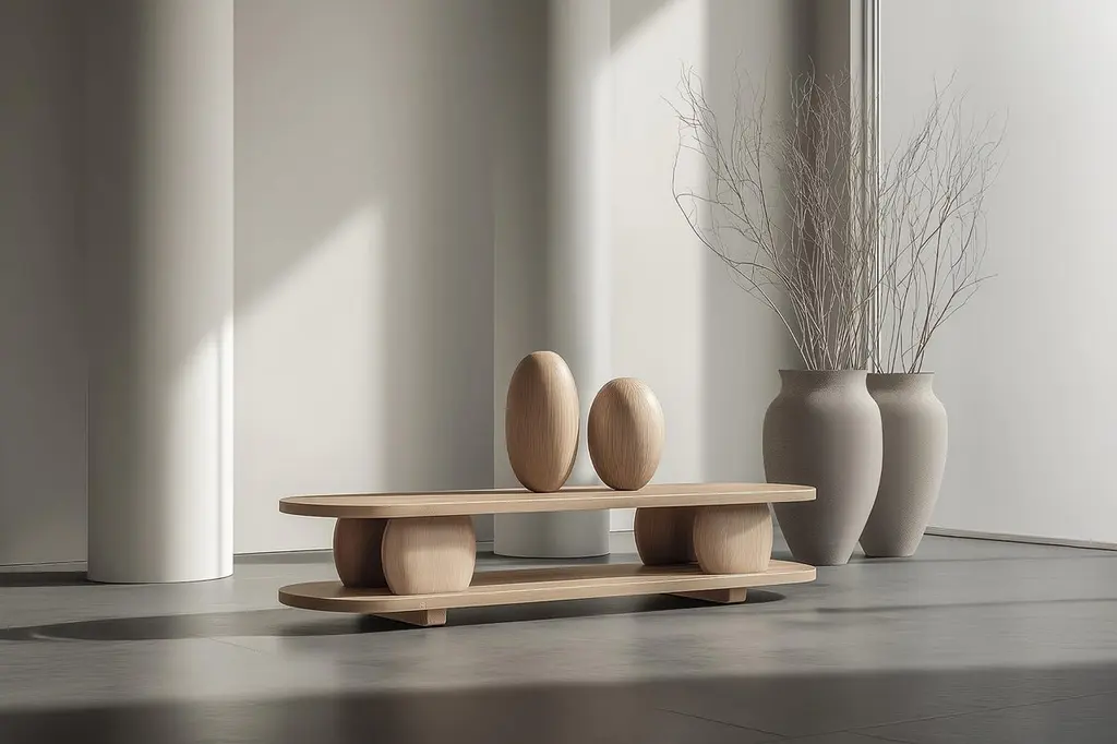 Sereno No33, Console Table With Minimal Wooden Geometry By Joel Escalona