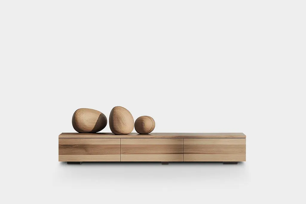 Sereno No50 Bench Table in Solid Wood, Contemporary Furniture by NONOSereno CollectionDesign by Joel Escalona for NONOWhen practicality becomes art, the result is the Sereno Collection by Joel Escalona for NONO. This collection redefines tranquility through exquisite credenzas and sideboards that stand alone in their beauty, embodying a serene simplicity that everyone can feel.The Sereno Collection celebrates minimalism with pieces that don’t need additional decoration to make a statement. Each credenza and sideboard is adorned with unique wooden sculptures, reminiscent of a tranquil pebble, thoughtfully placed to enhance its elegance. These pieces are crafted from solid wood, adding character to each design. Standard models use red oak, but customization with various woods and finishes like walnut, teak, and burnt oak is available to perfectly suit your style and space.Founded in 2011 by Joel Escalona, NONO has over a decade of experience producing high-quality interior furnishings. Joel’s work transcends categorization, blending creativity, productivity, and introspection. His multifaceted approach, encompassing drawing and sculpture, infuses his designs with lyricism, humor, and poetry.NONO's philosophy centers on transforming everyday beauty into extraordinary art forms, seamlessly blending functionality and aesthetics. Each Sereno credenza and sideboard exemplifies this philosophy, offering both beauty and practicality. When you choose a piece from the Sereno Collection, you’re not just acquiring furniture; you’re bringing a piece of art into your home.Each piece in the Sereno Collection makes you feel serene and tranquil, embodying a minimalist elegance that doesn’t require additional ornamentation. The beauty of these designs is that they are complete in themselves. You don't need to add anything else to the compartments or surfaces; they stand alone, transforming any living room or interior project with their quiet sophistication.Experience the serene elegance of the Sereno Collection by Joel Escalona for NONO, where every piece speaks softly yet powerfully, transforming your space with its quiet beauty.———Some details to consider when placing an order with us:• Catalog images are digitally generated. Actual products may slightly vary in texture, grain, and final finish due to natural material differences. Despite these variations, our expertise ensures each piece maintains high quality and matches the intended design.• All of our products are made to order, and the lead time for standard products is estimated to be 9 to 12 weeks, plus shipping time. However, special pieces or sculptures may require a longer lead time.• We offer customization in dimensions and finish for all of our furniture pieces, which may result in additional charges.• We only facilitate freight services by a third party. The client is solely responsible for any associated import/export taxes, as well as any necessary customs paperwork.• We are not responsible for any damages that may occur during shipping or for any customs-related delays.