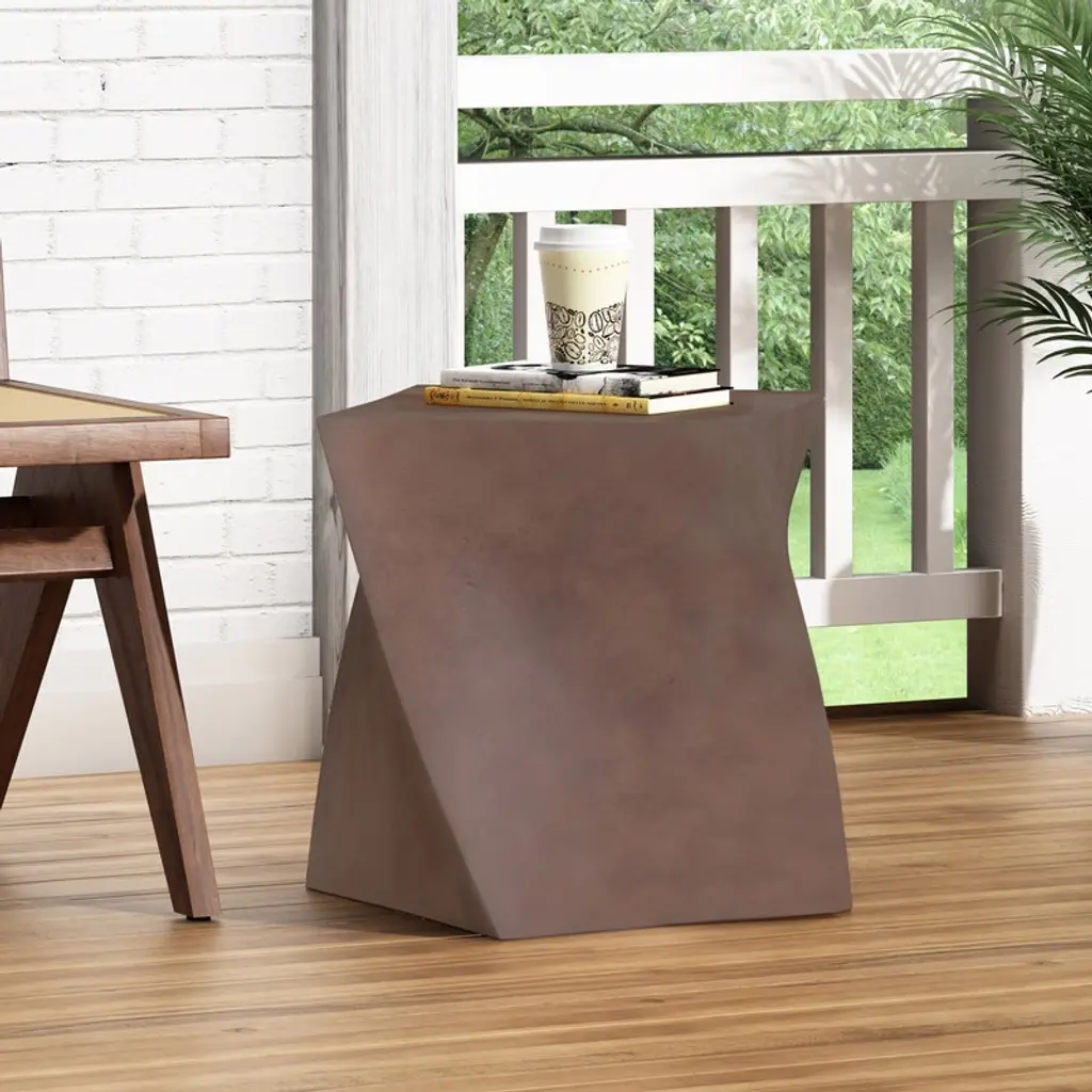 Sevobal Patio Coffee Tables, Concrete Side Table, Irregular Design Accent Table With Weather Resistant, Garden Patio Furniture, White 20.5"*20.5"*18"