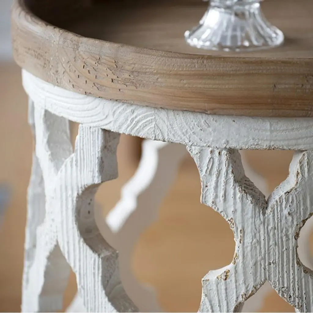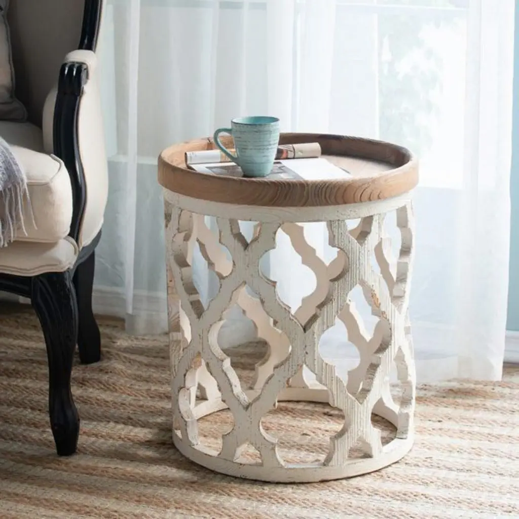 Sevobal Patio Coffee Tables, Wooden Side Table, Round Accent Table With Weather Resistant, Patio Furniture, White 19.7"*19.7"*23"