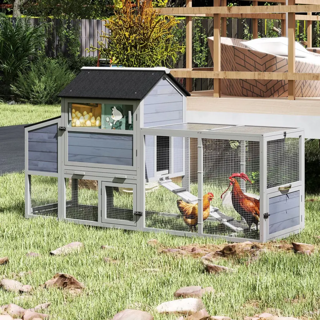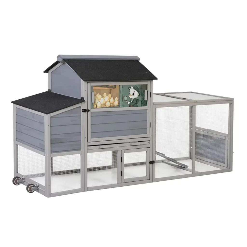 Sevobal Pet Crates And Houses Color-patterned Portable Mobile Chicken Coop Multi-functional Animal Home Swivel Wheels, Grey, 82.30"*22.8"*44.90"