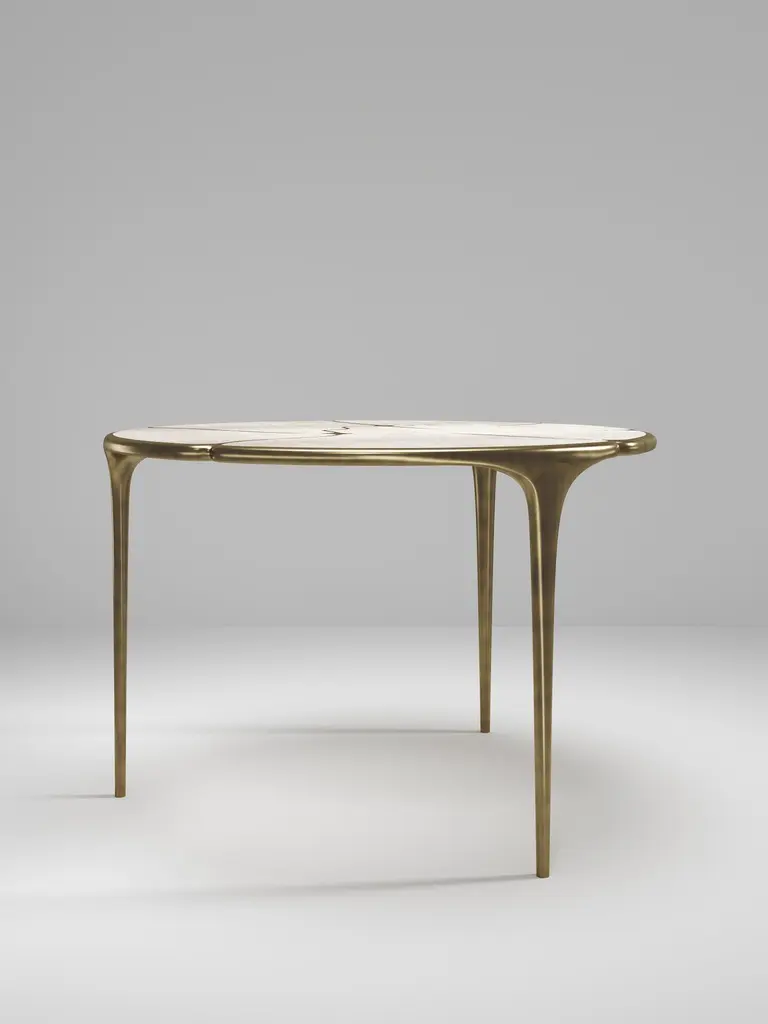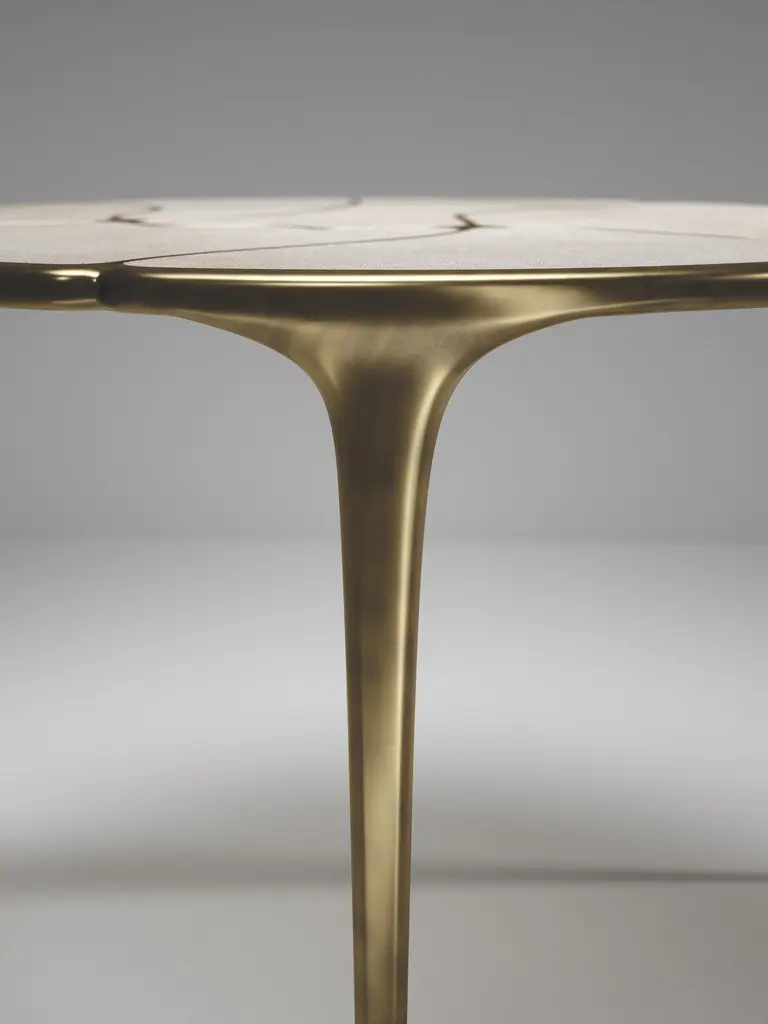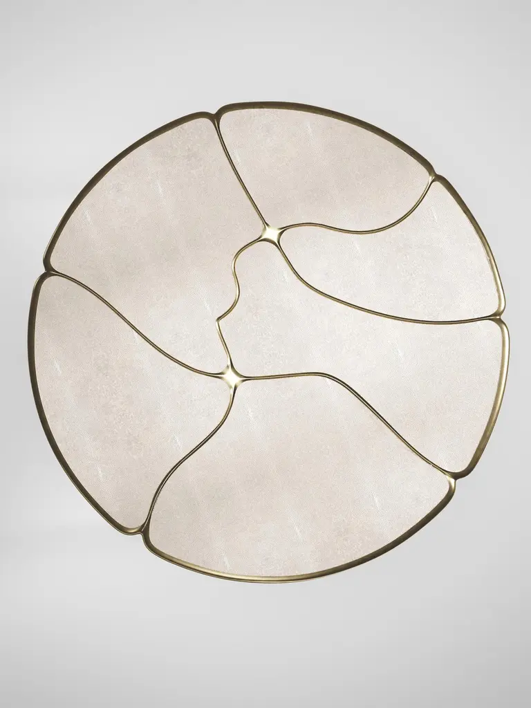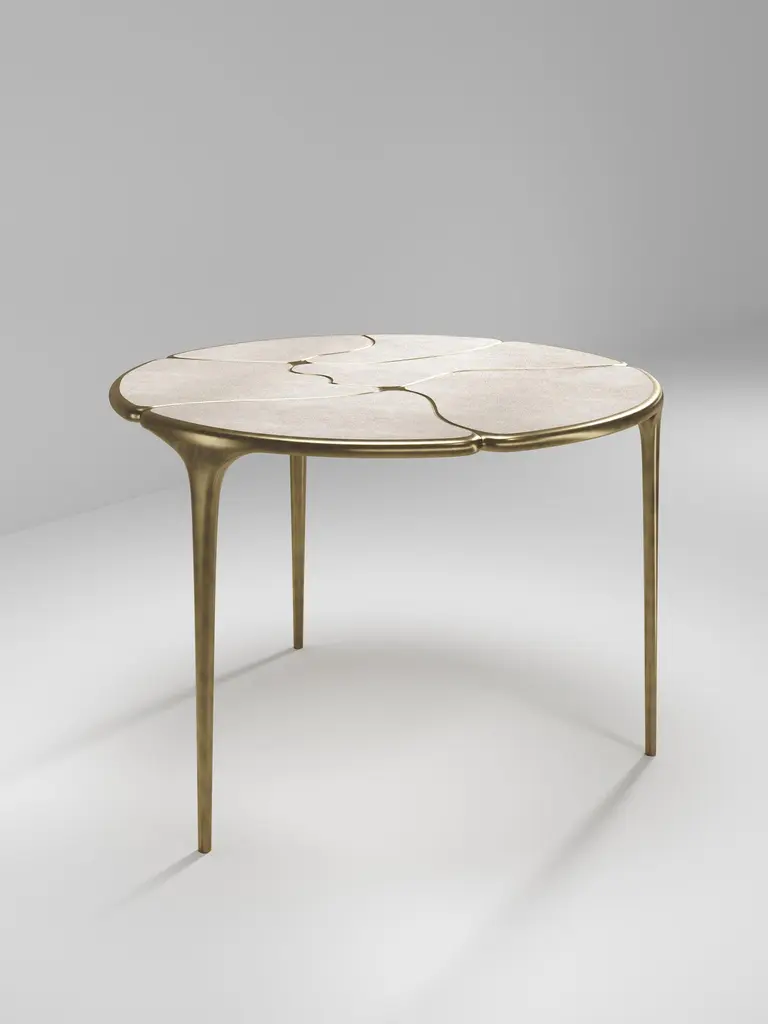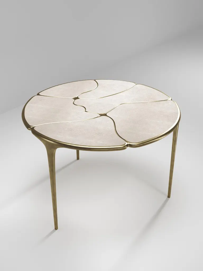 The Paris based label has distinguished themselves since their launch, with their iconic use of shagreen mixed with brass and other exotic materials. All furniture is handcrafted by skilled artisans, ultimately making each piece unique, designed in Paris and produced in the Philippines.The Frequency breakfast table by R & Y Augousti is sleek piece with a vintage-modern feel. The piece explores fluid organic lines with subtle detailing to create the signature Augousti aesthetic. The piece is inlaid in a mixture of cream shagreen and bronze patina brass. Part of the Frequency capsule, see images at end of slide.The dimensions of this piece are :120 dia x 80 cmAll R & Y Augousti pieces are handmade by artisans, ultimately making each piece unique.Wipe clean with soft dry cloth.Acclaimed design duo Ria & Yiouri Augousti have established themselves since the 1990s as pioneers of modern-vintage style through their luxurious Art Deco inspired collections.The Paris based label has distinguished themselves since their launch, with their iconic use of shagreen mixed with brass and other exotic materials. All furniture is handcrafted by skilled artisans, ultimately making each piece unique. All shagreen-covered items should be kept out of direct sunlight, color variants may occur on the stingray and other exotic finishes, but this showcases the Parisian label's commitment to creating authentic luxurious products using natural components.