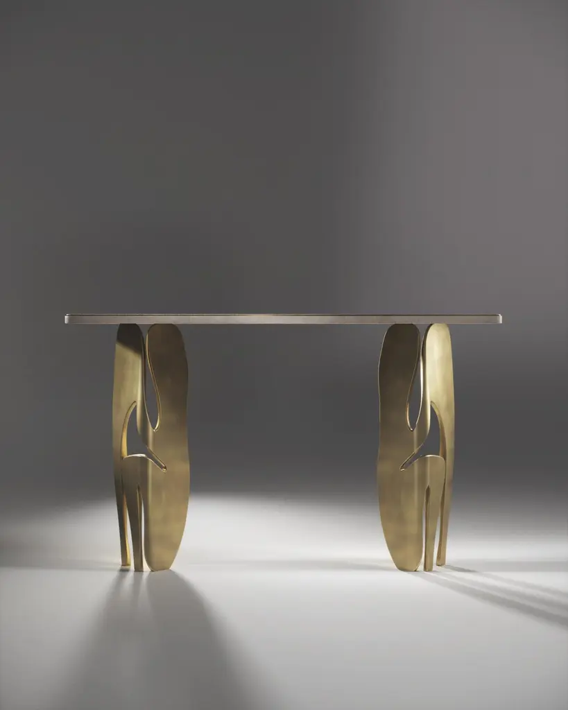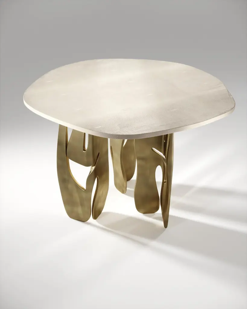Shagreen Breakfast Table With Sculptural Brass Legs By R & Y Augousti
