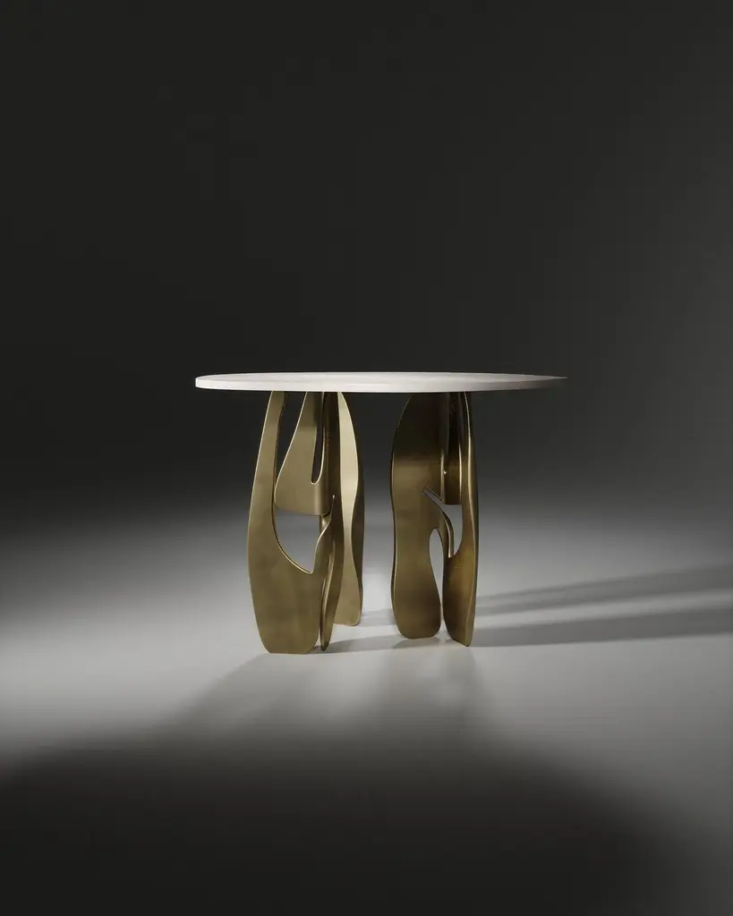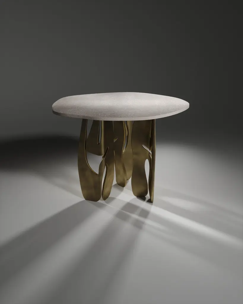 The Paris based label has distinguished themselves since their launch, with their iconic use of shagreen mixed with brass and other exotic materials. All furniture is handcrafted by skilled artisans, ultimately making each piece unique, designed in Paris and produced in the Philippines.The Metropolis II breakfast table by R&Y Augousti is a statement piece. The amorphous-shaped cream shagreen inlaid top sits on a cluster of dramatic sculptural bronze-patina brass legs, showcasing the brand's incredible artisanale work. View the console table version from this capsule at end of image slide.The dimensions of this piece are 110 diameter x 74 cm All R & Y Augousti pieces are handmade by artisans, ultimately making each piece unique.Custom color or sizing available on request. Wipe clean with soft dry cloth.Acclaimed design duo Ria & Yiouri Augousti have established themselves since the 1990s as pioneers of modern-vintage style through their luxurious Art Deco inspired collections. The Paris based label has distinguished themselves since their launch, with their iconic use of shagreen mixed with brass and other exotic materials. All furniture is handcrafted by skilled artisans, ultimately making each piece unique.All shagreen-covered items should be kept out of direct sunlight, color variants may occur on the stingray and other exotic finishes, but this showcases the Parisian label's commitment to creating authentic luxurious products using natural components.