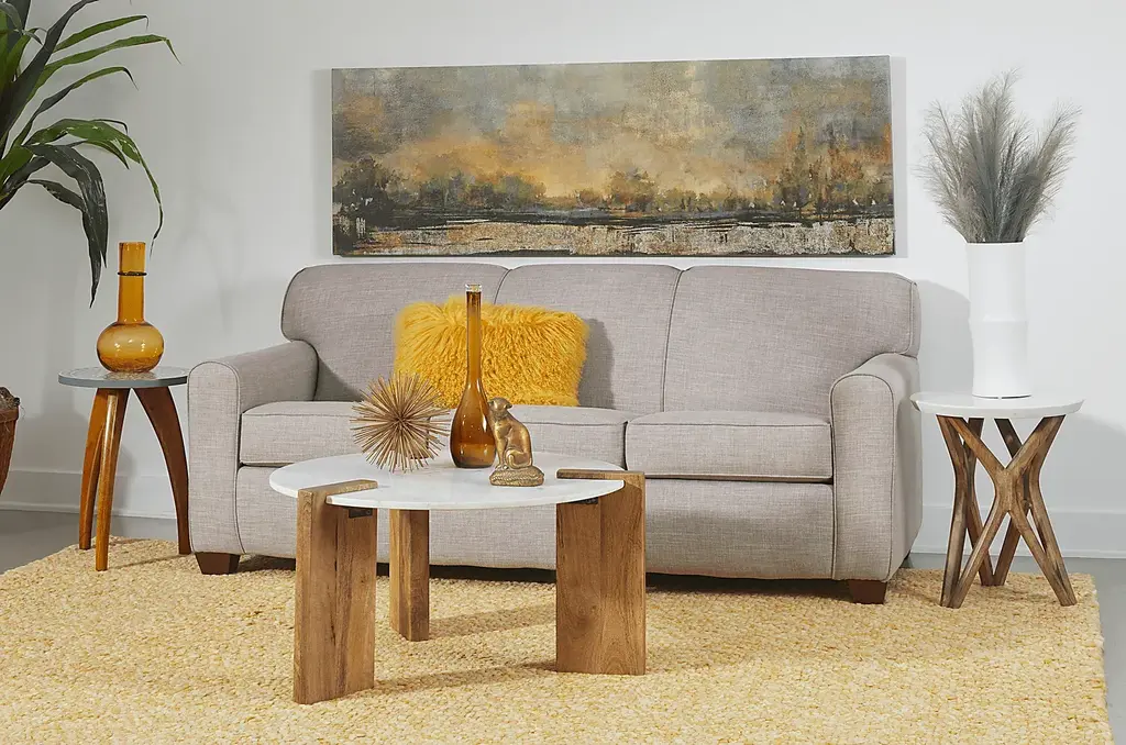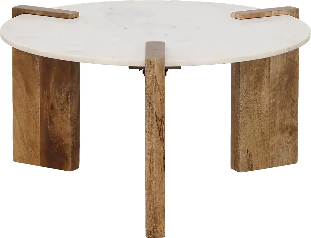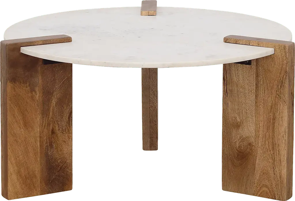 With three bold legs and a clean-lined top, this two-tone Shantivanna coffee table brings a stylish look to your living room seating ensemble. The round tabletop is crafted from naturally sourced white marble, while the solid mango wood legs come in a rich brown hue for a rustic touch. Keep decor and magazines on top for a casual feel, or rest trays of snacks and drinks whenever you're entertaining guests. Customer assembly is required.