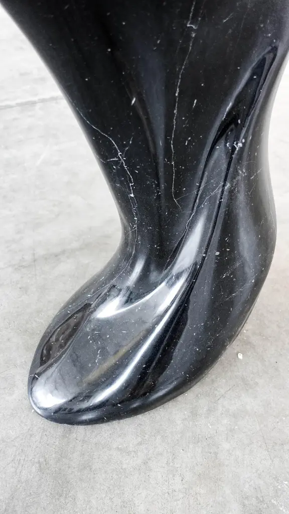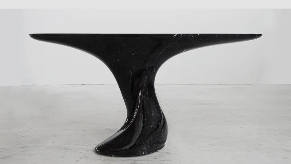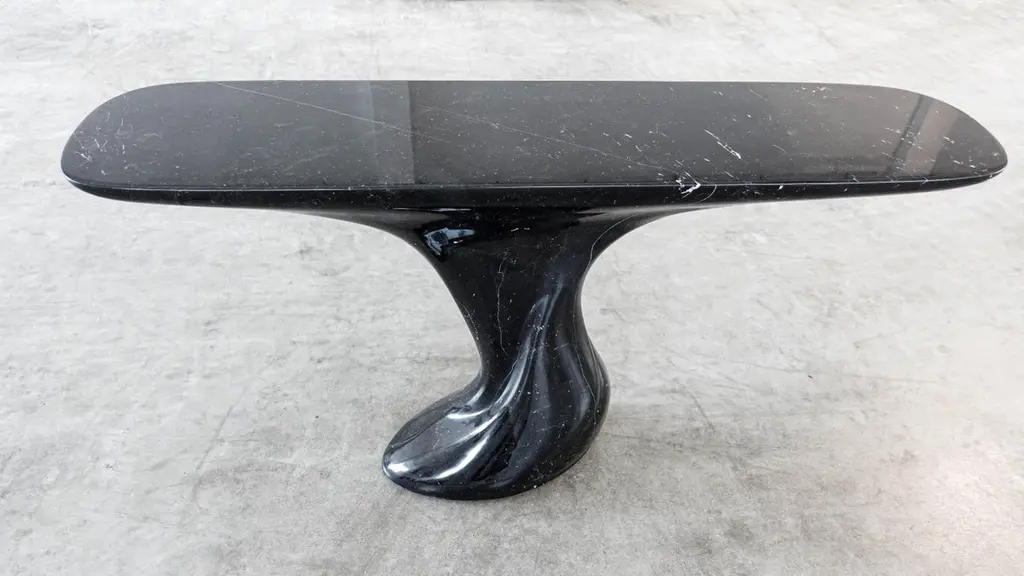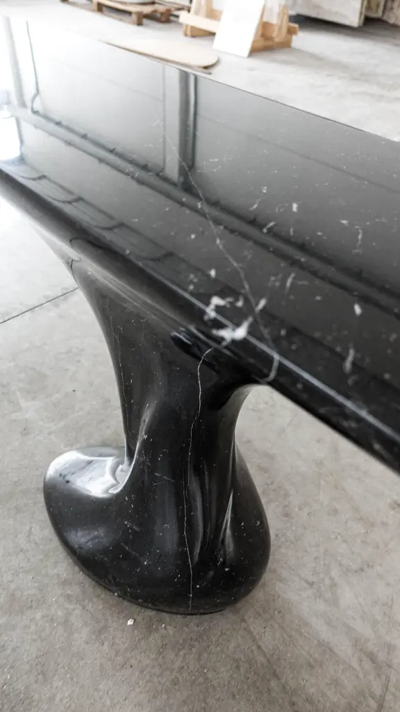The Shelly Console Table is a sculptural masterpiece that redefines the boundaries of furniture design. Crafted from exquisite Nero Marquina marble, it embodies the perfect balance between strength and fluidity. Its organic silhouette, designed by Michael Sean Stolworthy, draws inspiration from the flowing curves of nature, transforming solid stone into a piece that feels alive and dynamic.The deep black marble, animated by dramatic white veining, creates striking visual contrast, ensuring that no two tables are ever alike. Both bold and elegant, the Shelly Console is not just functional—it is a collectible design object that commands attention in any setting.As a statement console table, it exemplifies modern luxury, artisanal craftsmanship, and timeless sophistication. Perfect for contemporary interiors, it elevates any space with its dramatic presence and refined artistry.
